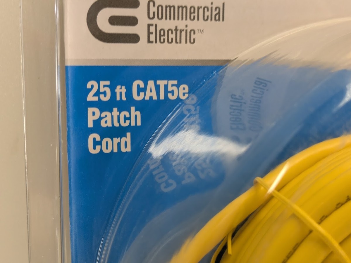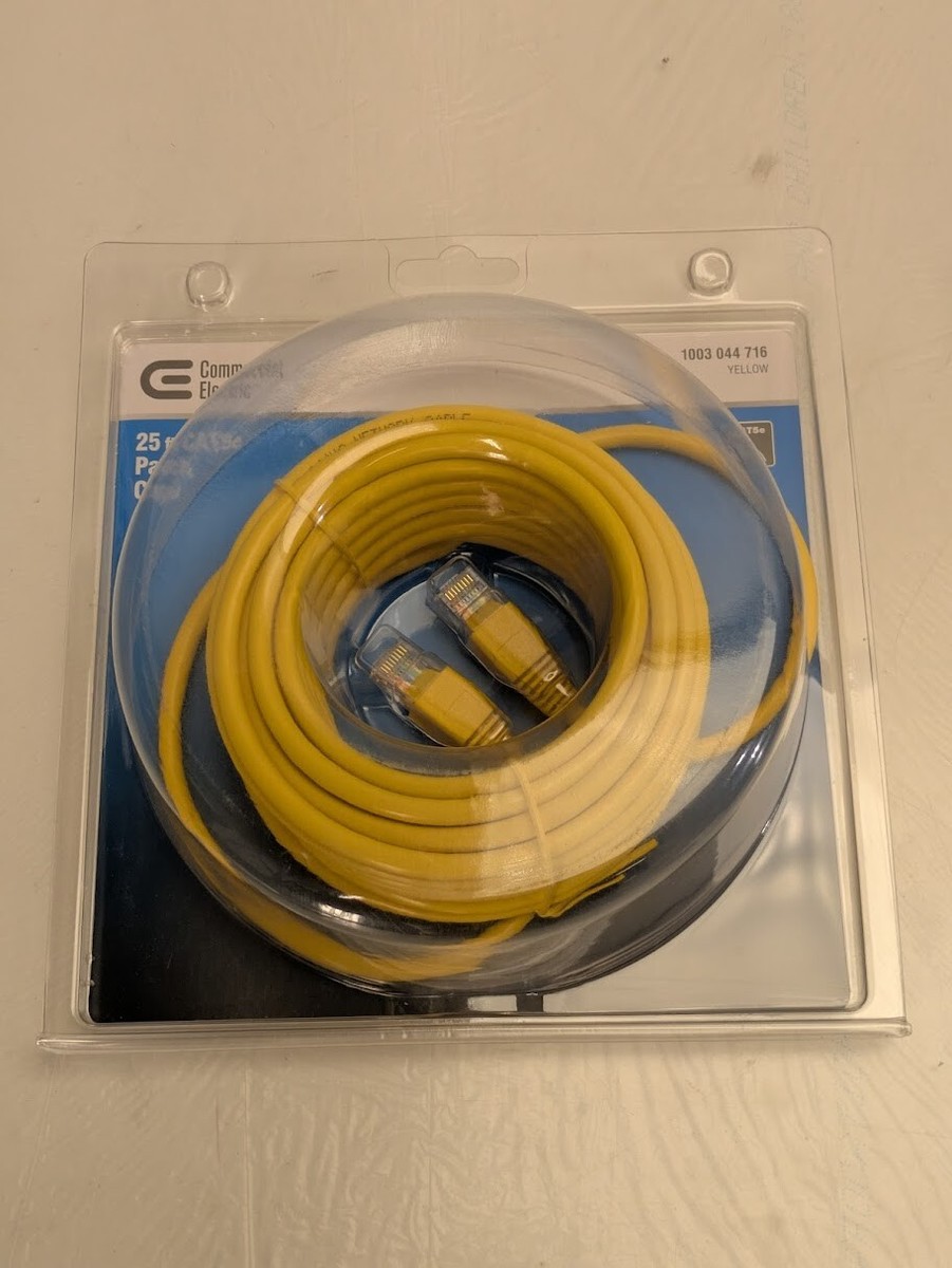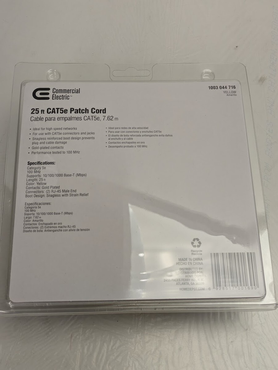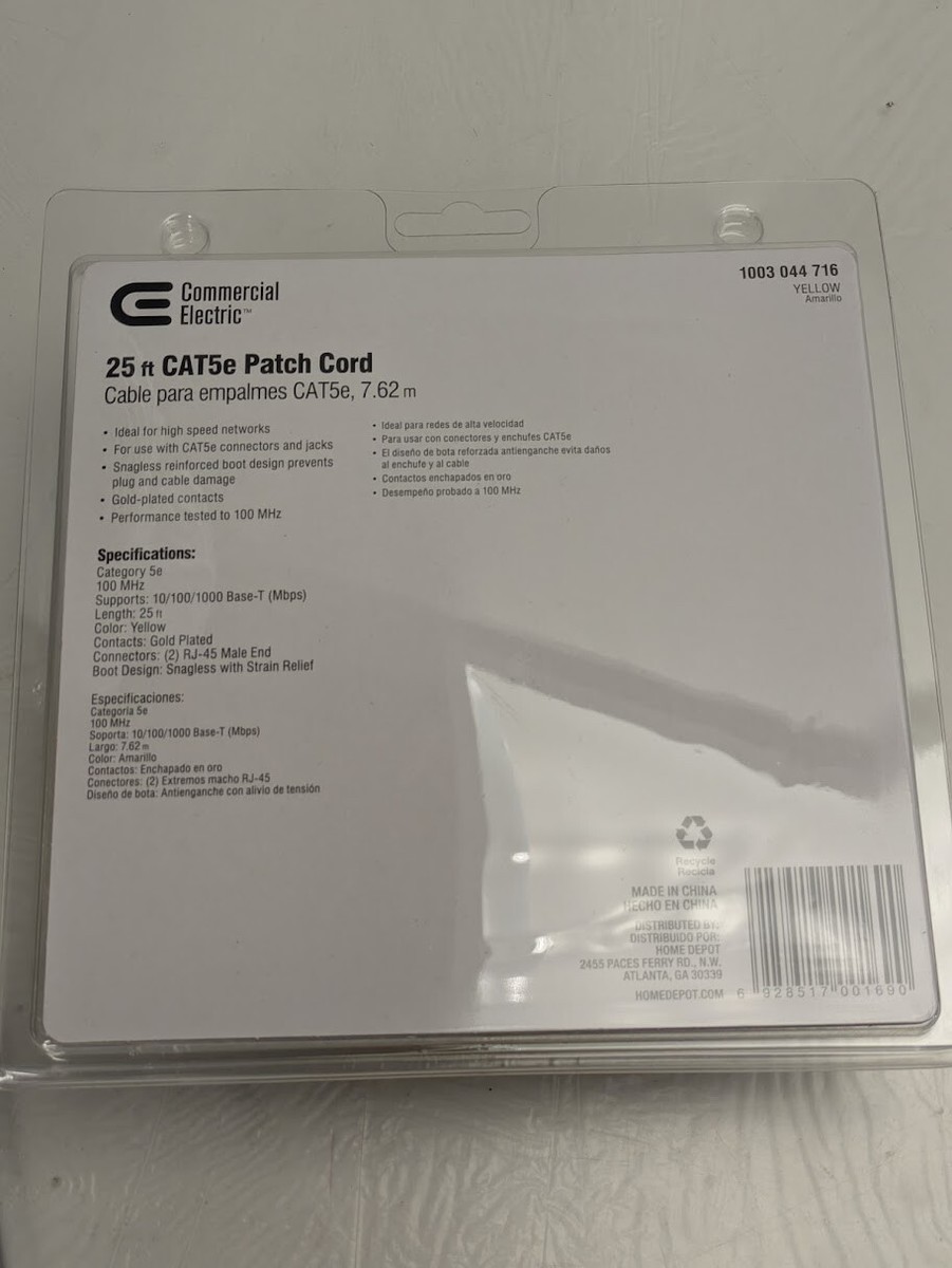 Commercial Electric CAT5e Ethernet Cable LAN Patch Cord RJ45 Yellow 25ft NEW