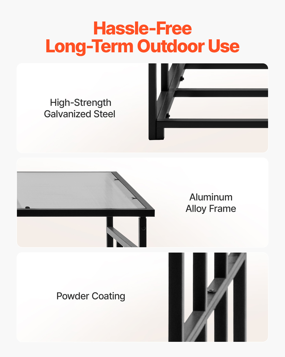 Galvanized Steel Aluminum Alloy Frame: Constructed with high-strength galvanized steel and aluminum alloy, the firewood holder frame is finished with a durable powder coating for excellent rust resistance. Engineered for long-term outdoor use, it won't easily warp or deteriorate over time.