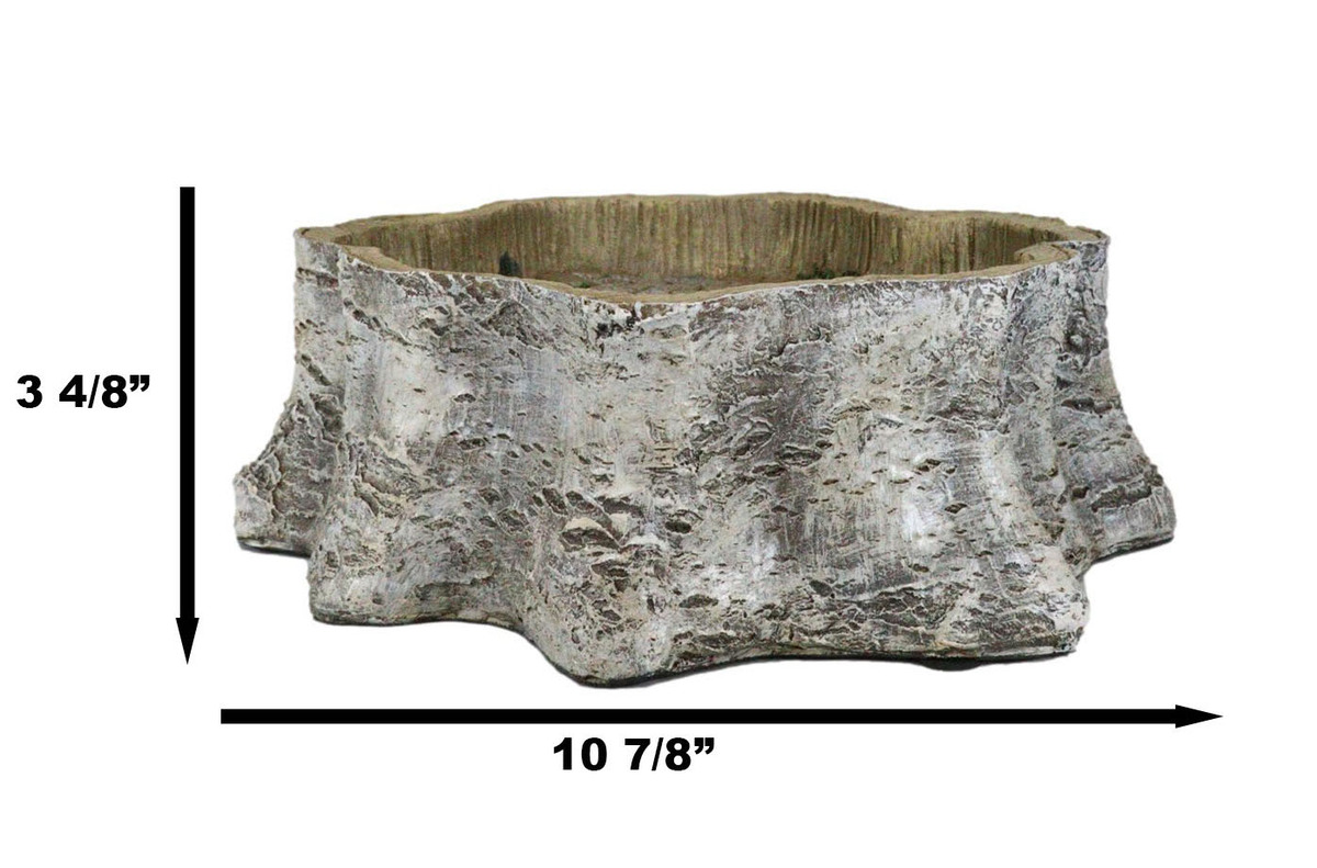 ? This Tree Stump Fairy Garden Display Nook figurine measures 3.25" tall, 11.25" wide and 10.5" deep approximately.