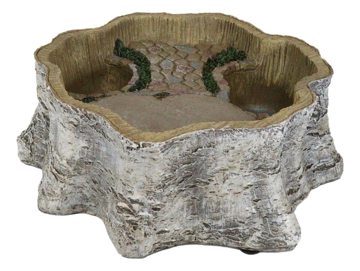 ? This Tree Stump Fairy Garden Display Nook figurine is made of premium grade cold cast polyresin, hand painted and polished individually.