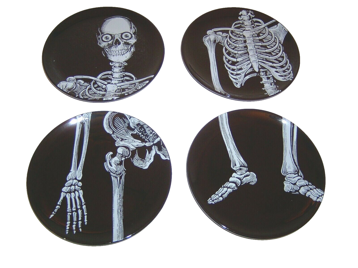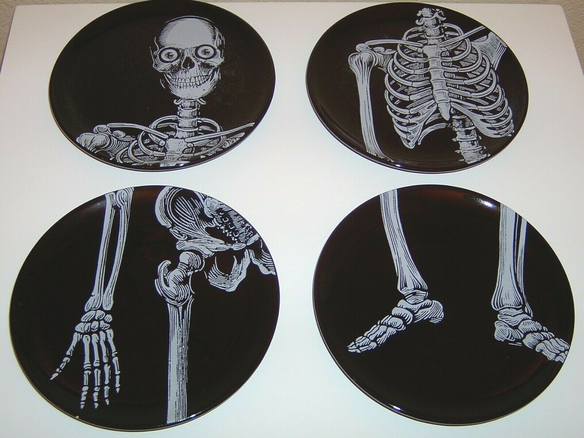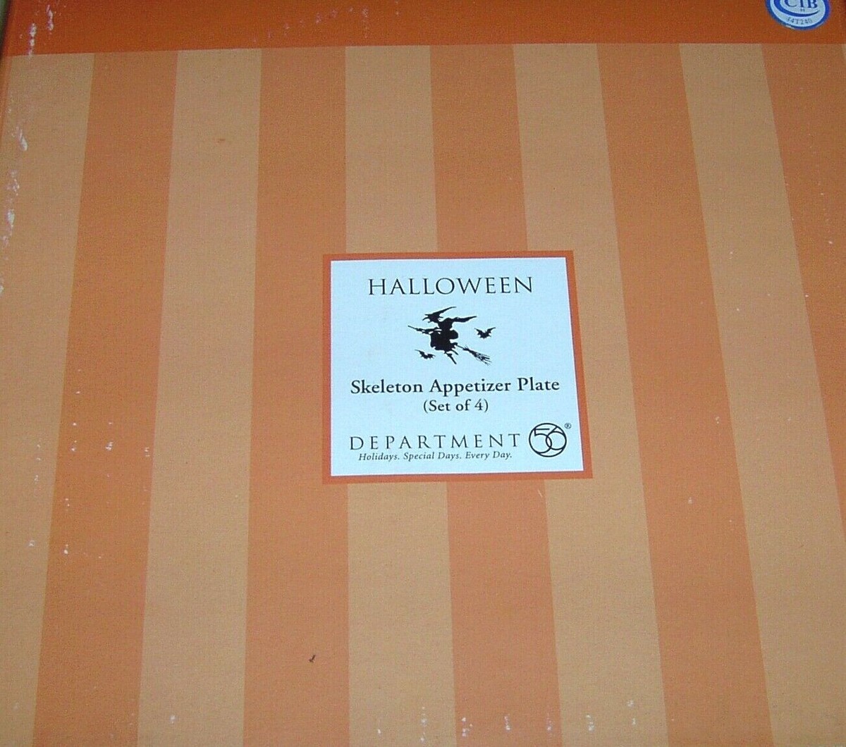 Set 4 Department 56 Halloween Skeleton Skull Bones Plates Dessert Appetizer NIB