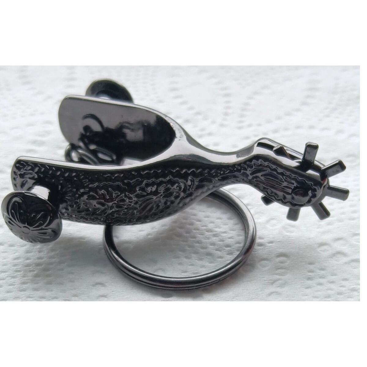 Western Fancy Boot Spur Keychain Bag Charm Black
