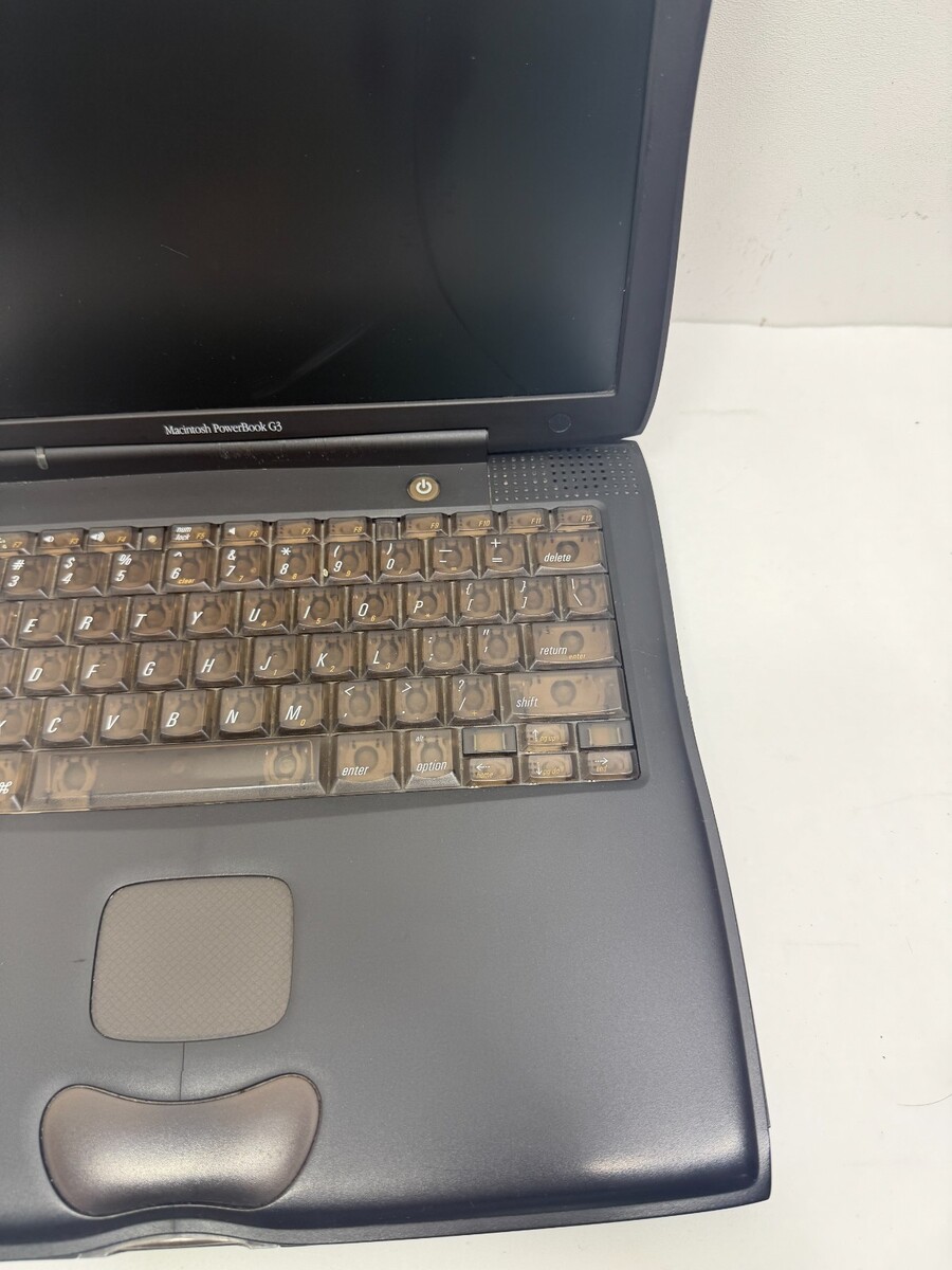 Vintage Apple PowerBook G3 (Model M5343), also known as the "Lombard" with the iconic bronze-tinted keyboard. This unit is being sold AS-IS for parts or restoration.