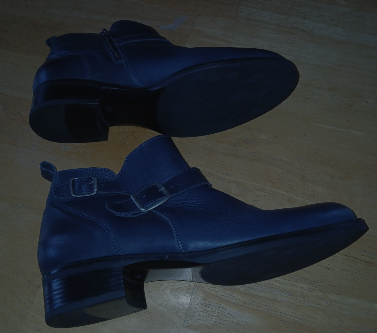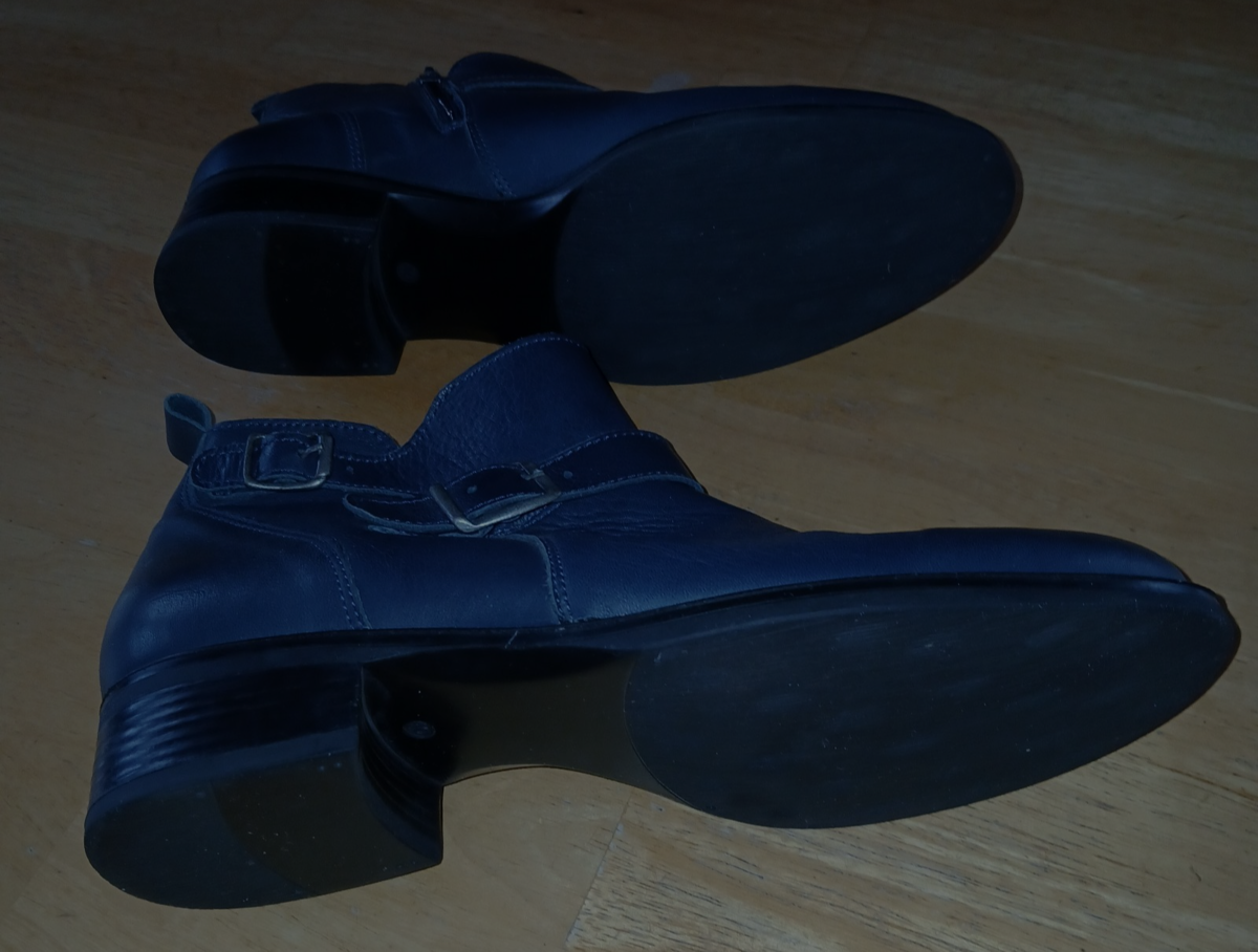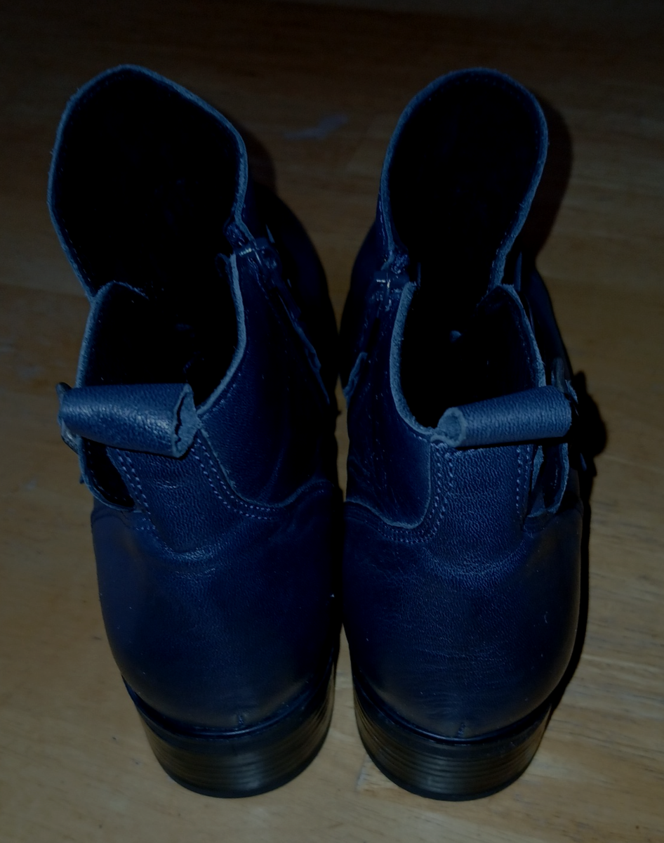 THIS IS A VERY NICE PAIR OF LADIES "WAY" NAVY LEATHER ZIP ANKLE BOOTS IN A SIZE 40 (9/9.5 US). THEY ARE IN EXCELLENT, LIKE NEW, CONDITION.