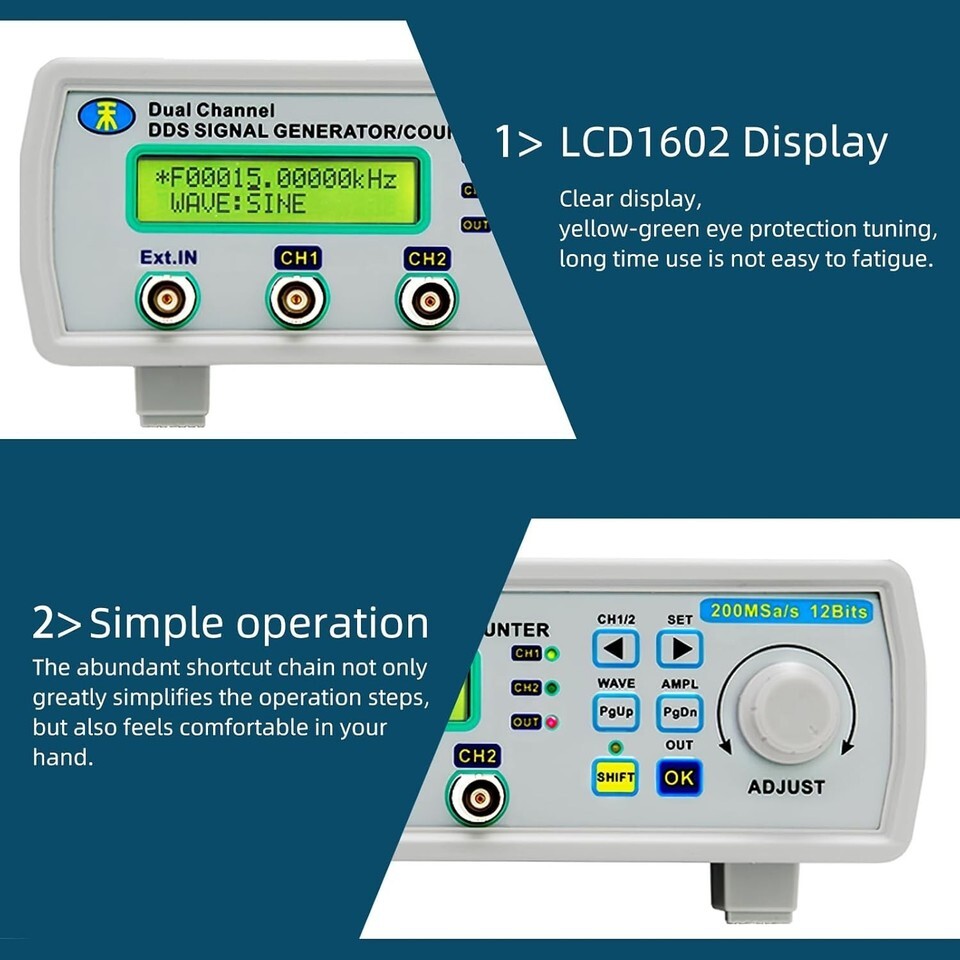 Dual-Channel 25MHz Frequency Meter with 200MSa/s Sampling Rate for Professionals