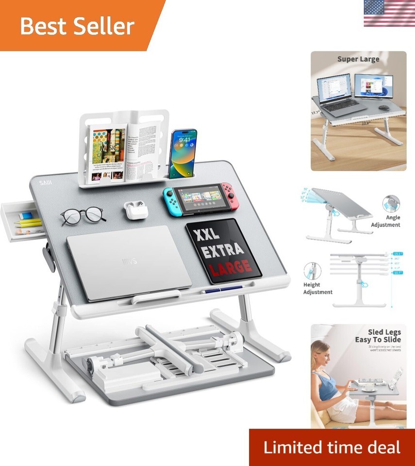 Bed Desk for Laptop, XX-Large Leather Adjustable Foldable Laptop Bed Tray Des...