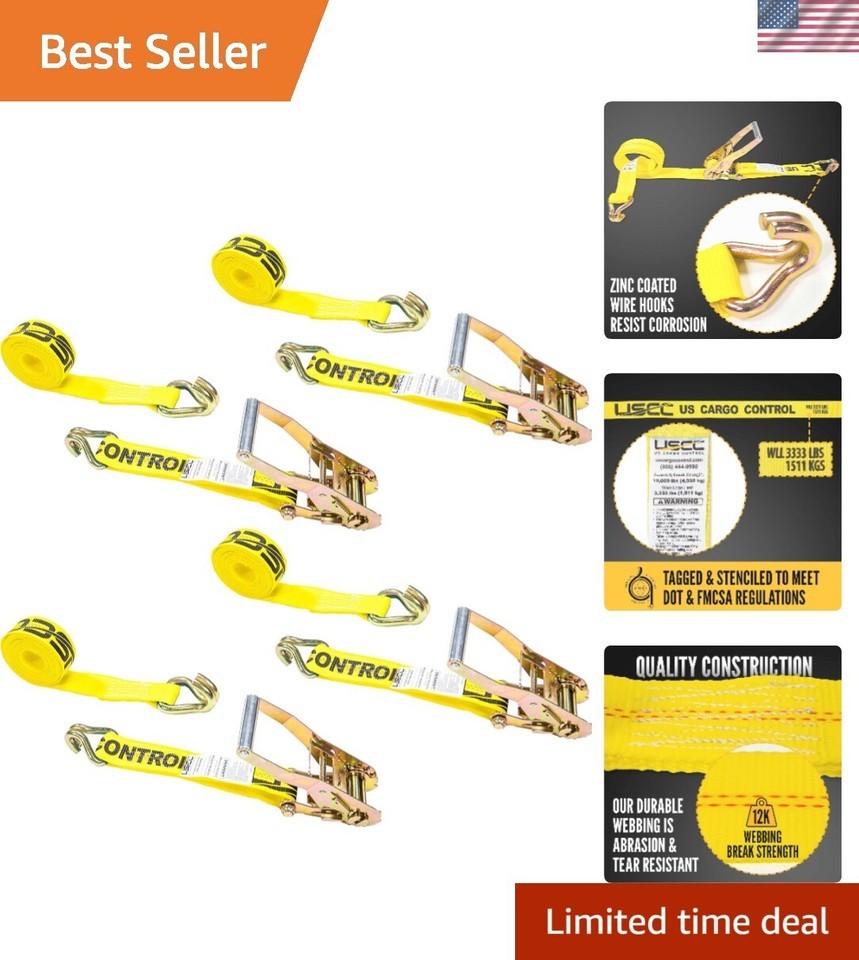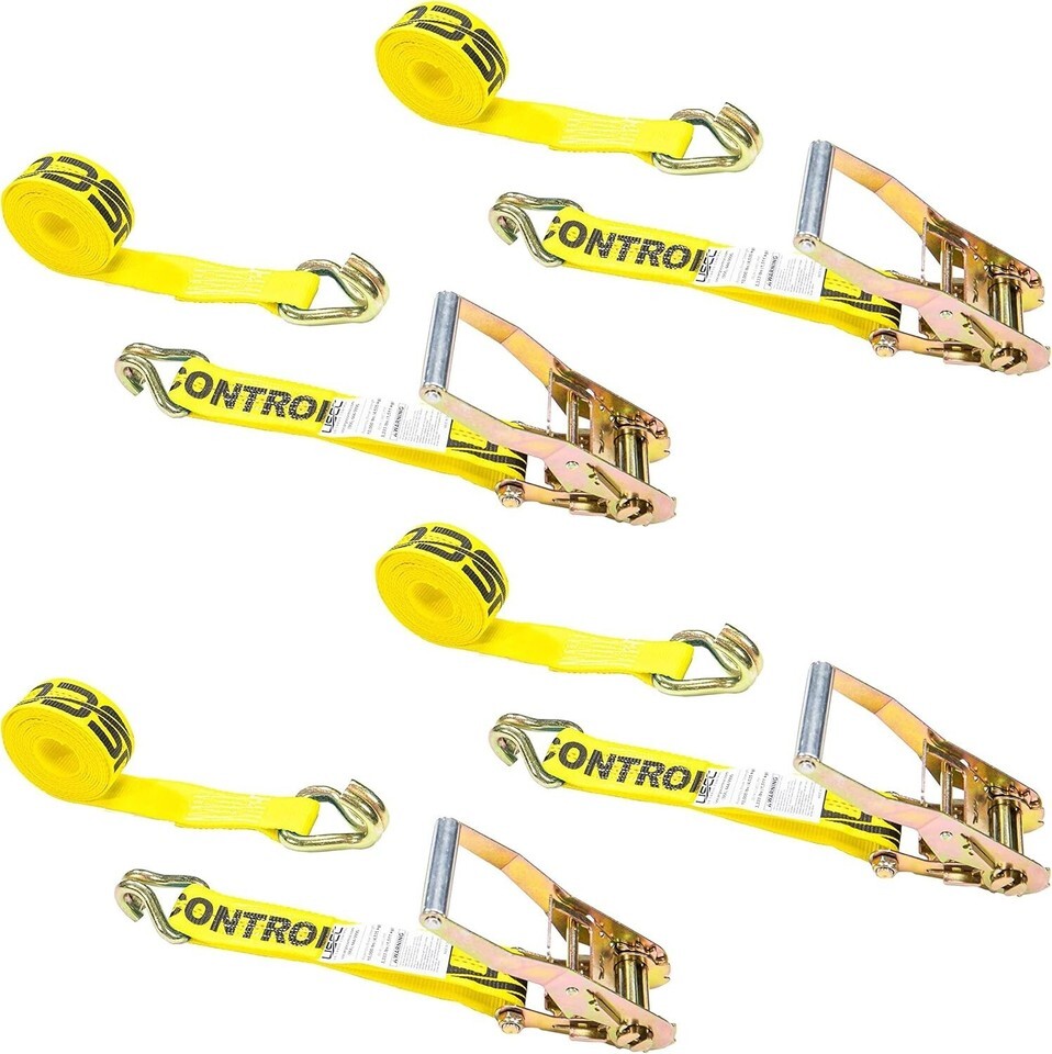 Ratchet Strap Heavy Duty 4-Pack, 2 Inch x 12 Foot Yellow Ratchet Strap with D...