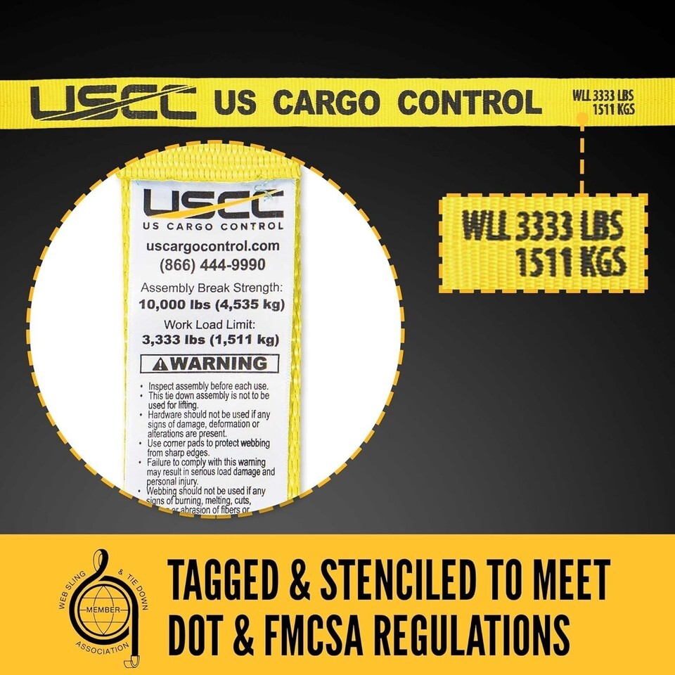QUICK IDENTIFICATION - Tie-Down Straps are tagged with working load limits and compliant with US DOT and Commercial Vehicle Safety Alliance (CVSA) guidelines, and meet or exceed Web Sling and Tie Down Association (WSTDA) standards.