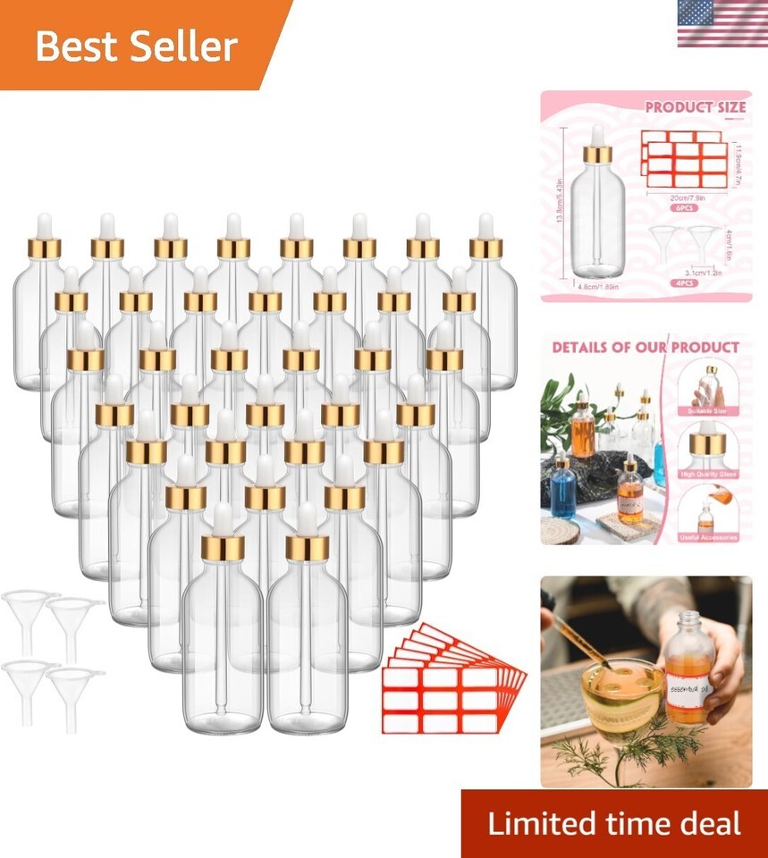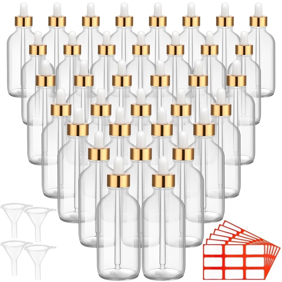 50 Pcs 4 oz Glass Dropper Bottle 120 ml Tincture Bottles with Dropper Lab Dropping Bottles with Eye Droppers, Funnels, Label Stickers for Essential Oil Perfumes Clear,Smooth