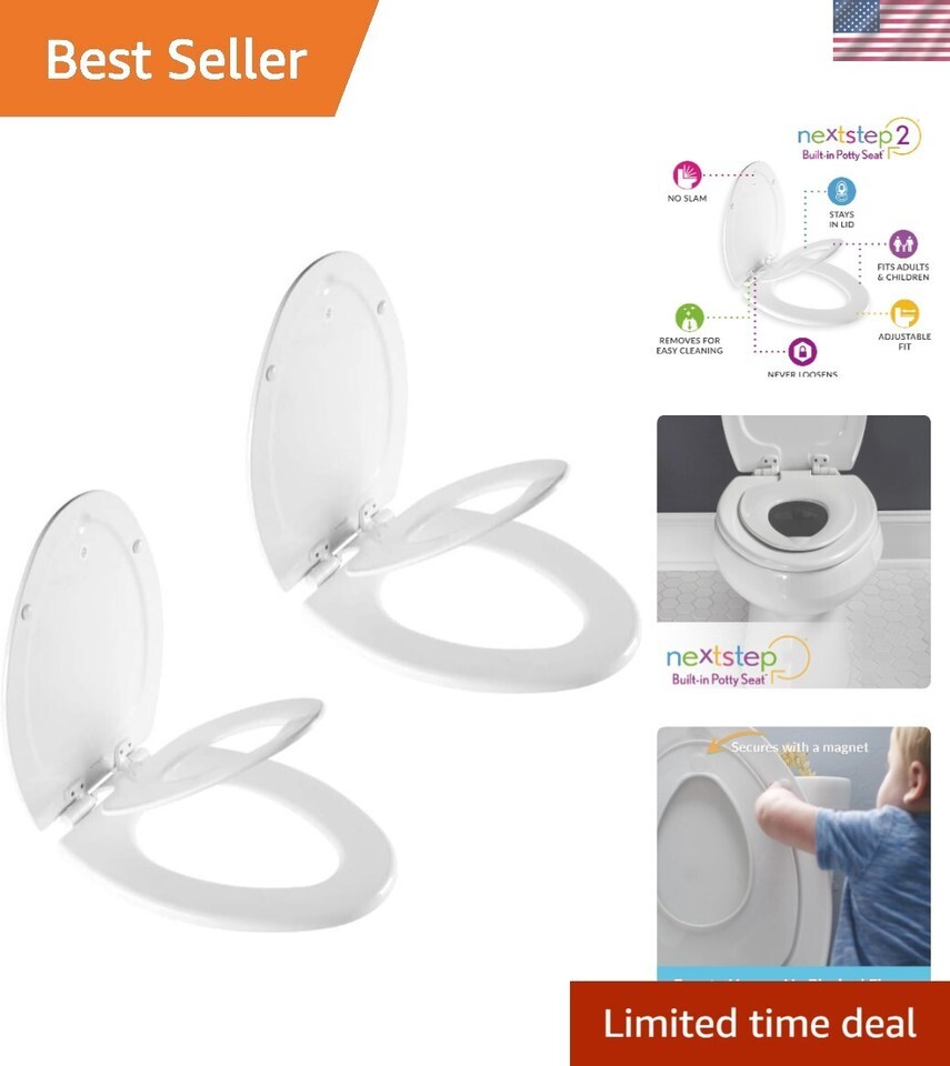 NextStep2 Toilet Seat with Built-In Toddler Potty Training Seat, Slow Close, Easy Clean, Magnetic Removable Kids Seat, ELONGATED, White, 2-Pack