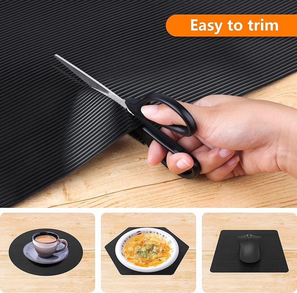 ? EASY TO TRIM DIY LINER: The cupboard liners come in the popular inches sizes. If you need special shapes to DIY your home kitchen, only need to trim with scissors, such as coasters, mouse pads, placemats, and so on.