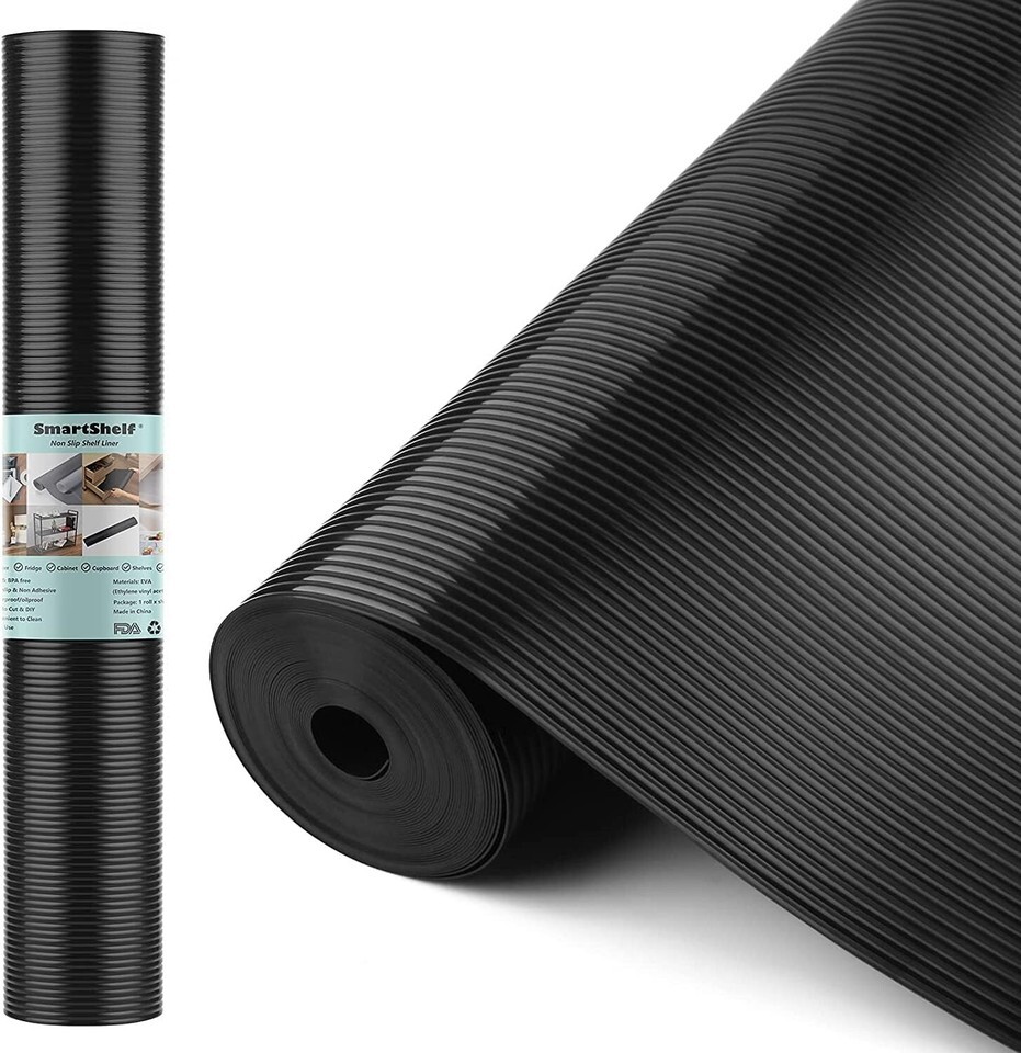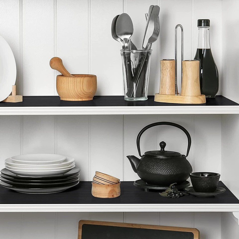 Shelf Liners for Kitchen Cabinets Non Adhesive Drawer Liner EVA Material Cupboard Mat Refrigerator Mats Washable Fridge Liner for Cabinet, Storage and Desks x Inches Black