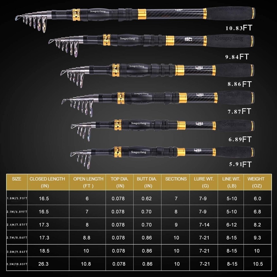 Lightweight 2.1m Carbon Fiber Telescopic Fishing Pole & Reel Combo for All Water