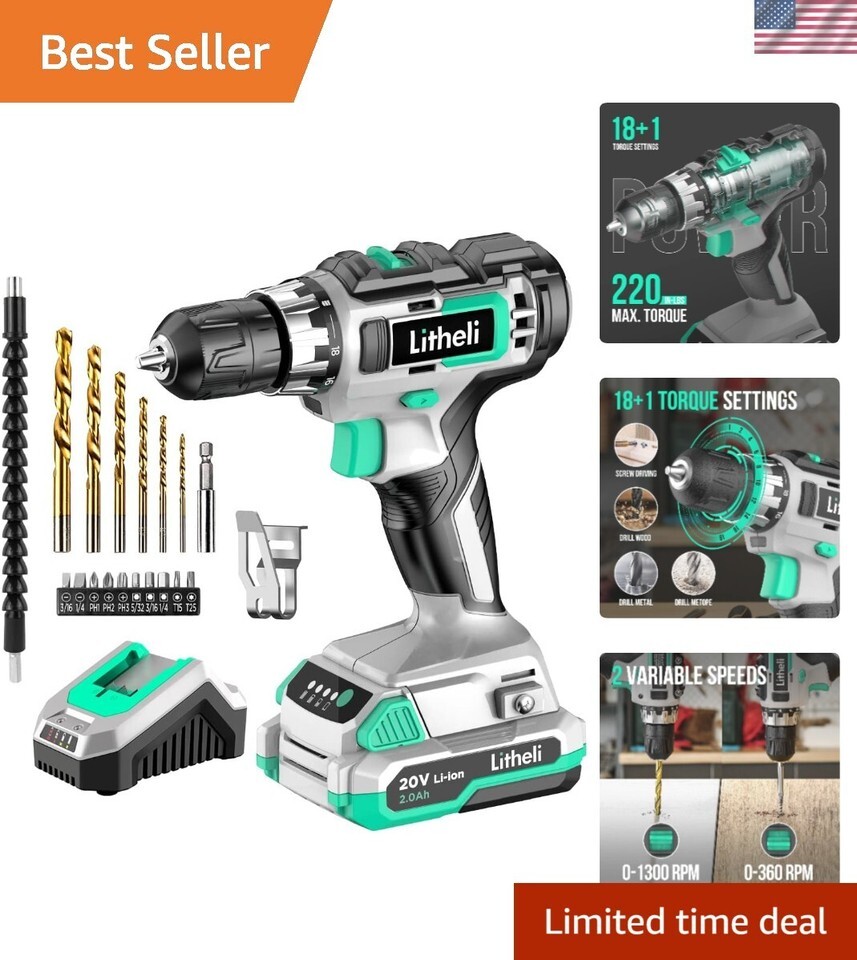 Ergonomic 20V Cordless Drill with Keyless Chuck & Fast Charger - Maximum Control