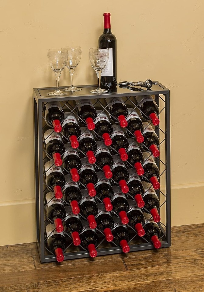Elegant 32-Bottle Wine Rack with Black Glass and 14 similar items