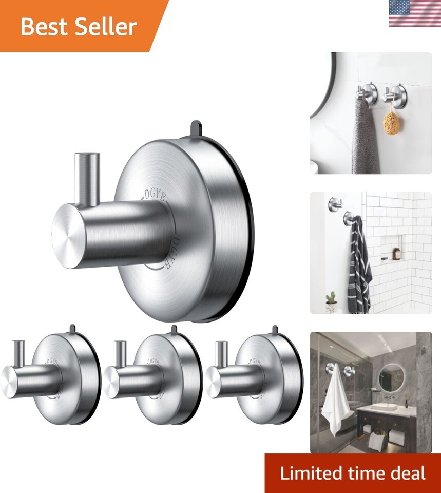 Suction Cup Hooks for Shower Set of 4 Brushed Nickel Towel Hooks for Bathroom...