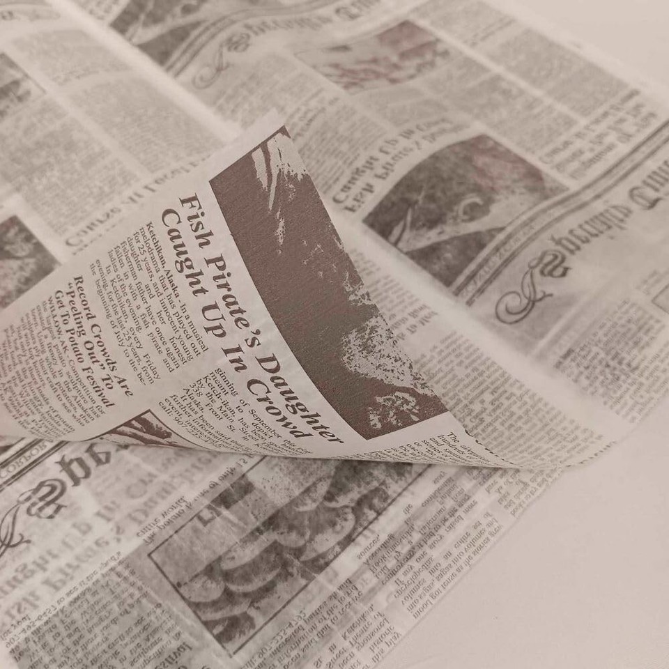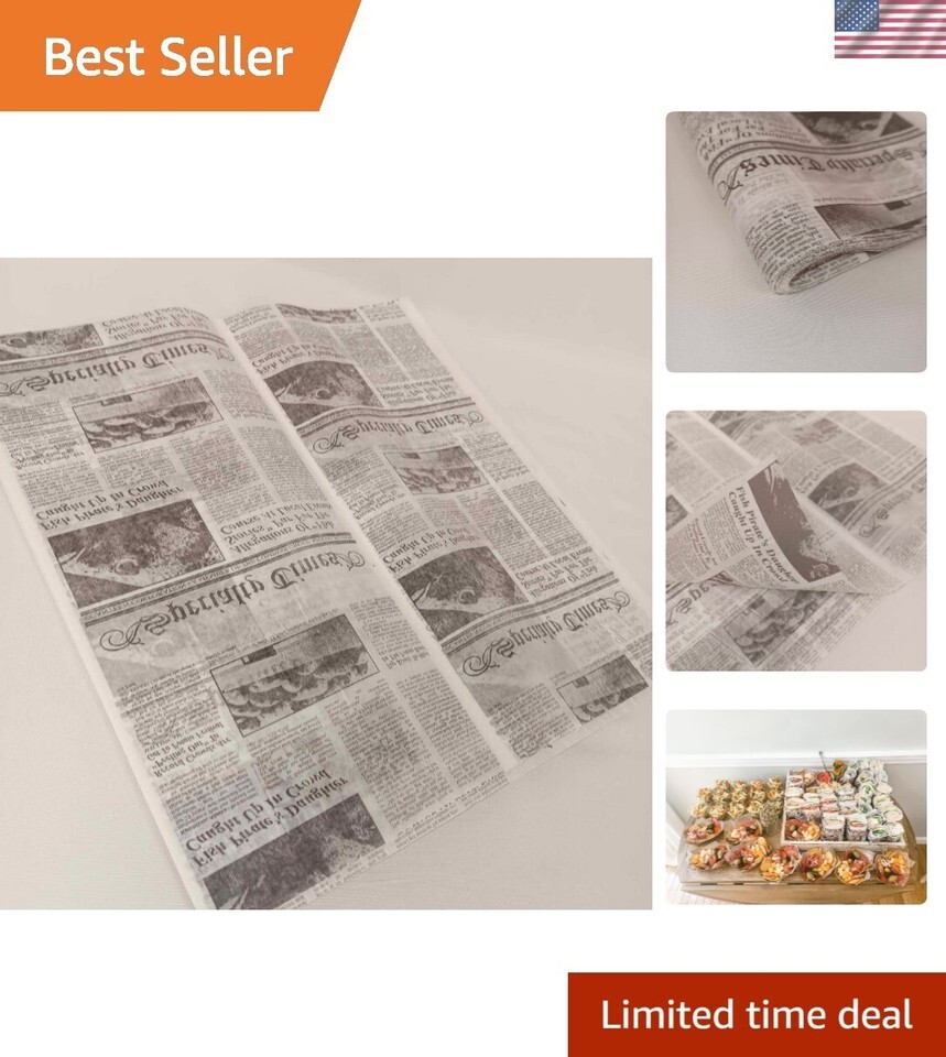 Deli Paper Sheets Sandwich Wrap Paper - Food Wrapping Grease Resistant Checkered Basket Liners, 12" x 12" Newspaper Print, 250 Count
