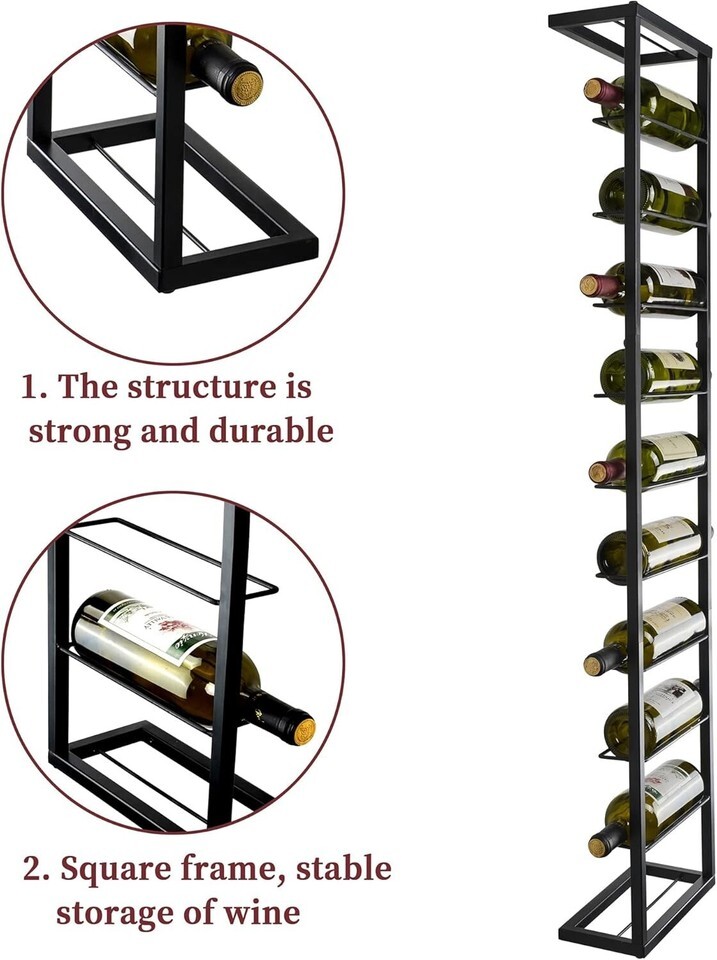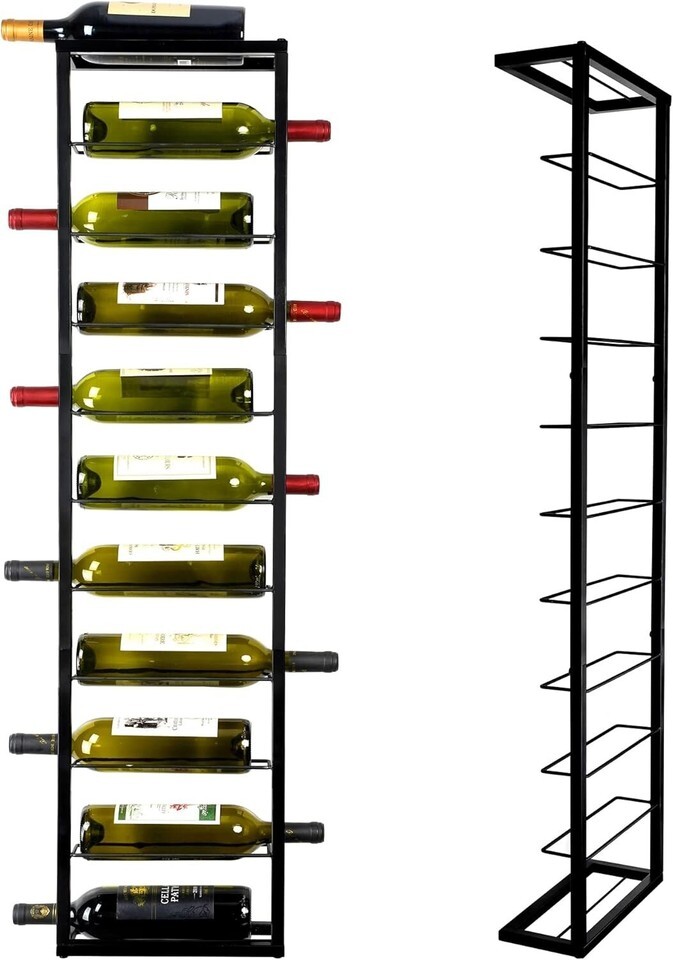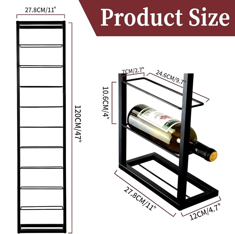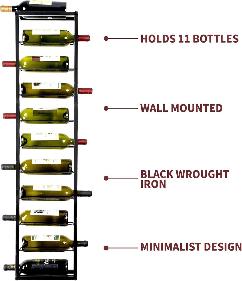 QUALITY: Our wall wine rack is made of high-quality carbon steel and consists of three small brackets, The wine rack measures 11"L * 48"H. each with three tiers, which can be connected to form a long wine rack.