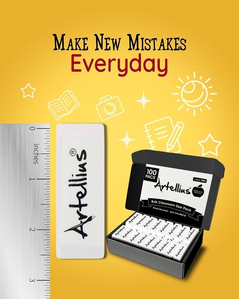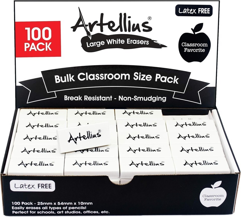 White Erasers Pack of 100 - Large Size Latex & Smudge Free for Art Classrooms...