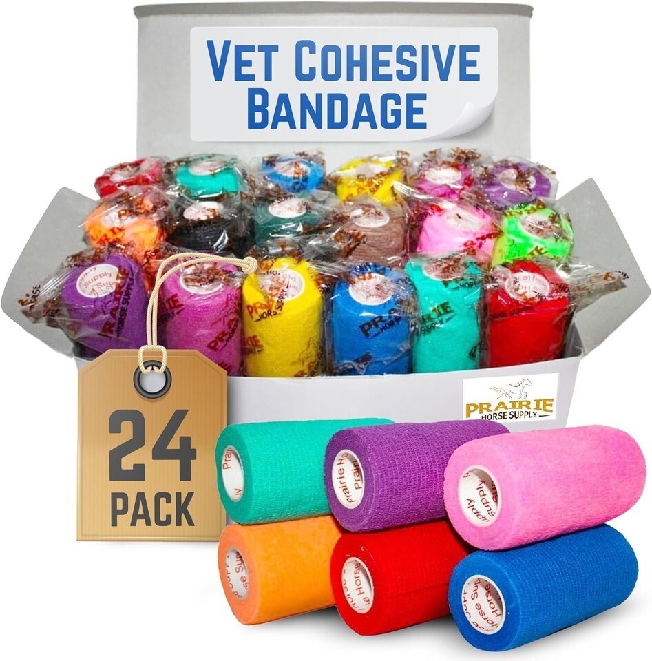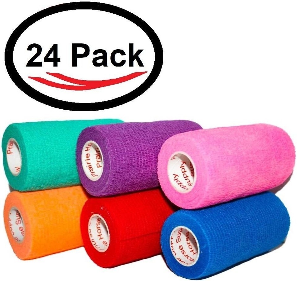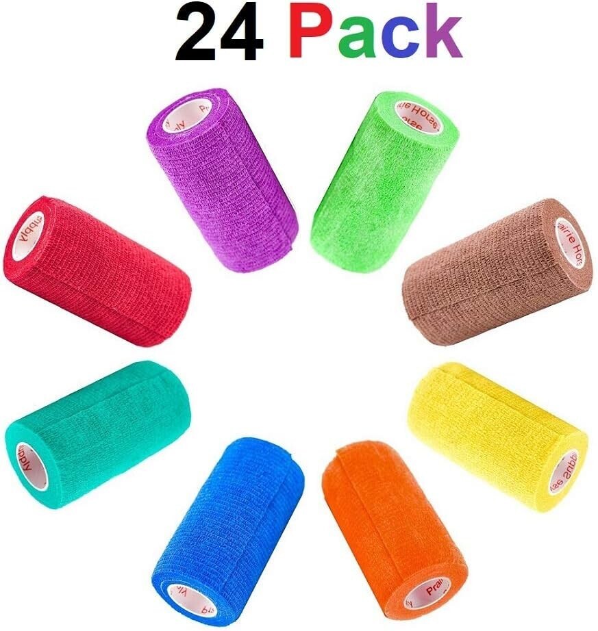3 Inch Vet Wrap Tape Bulk Assorted Colors Pack of 24 Self Adhesive Adherent Adhering Flex Bandage Grip Roll for Dog Cat Pet Horse