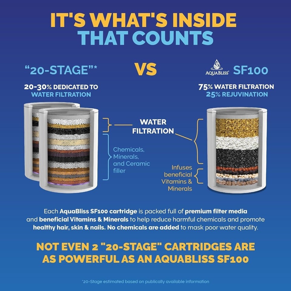 ADVANCED REVITALIZING SF100 VS MULTI STAGE SF220: CUSTOMERS LOVE both of our Universal shower head filters. Here?s how to know WHICH ONE TO CHOOSE. If you?re simply looking for a HEAVY DUTY shower filter to target and reduce chemicals, sediment and chlorine ? buy our SF220. If you?d love the BONUS BENEFIT of our ceramic beads, to RESTORE HEALTHY, itch free skin, shiny hair and strong nails then you?ll want to add this Advanced revitalizing filter to your cart now