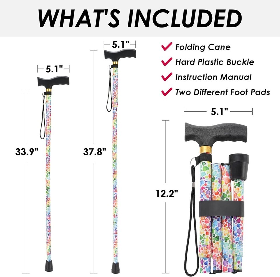 Stylish 5-Level Height Adjustable Folding Walking Cane with T-Handle