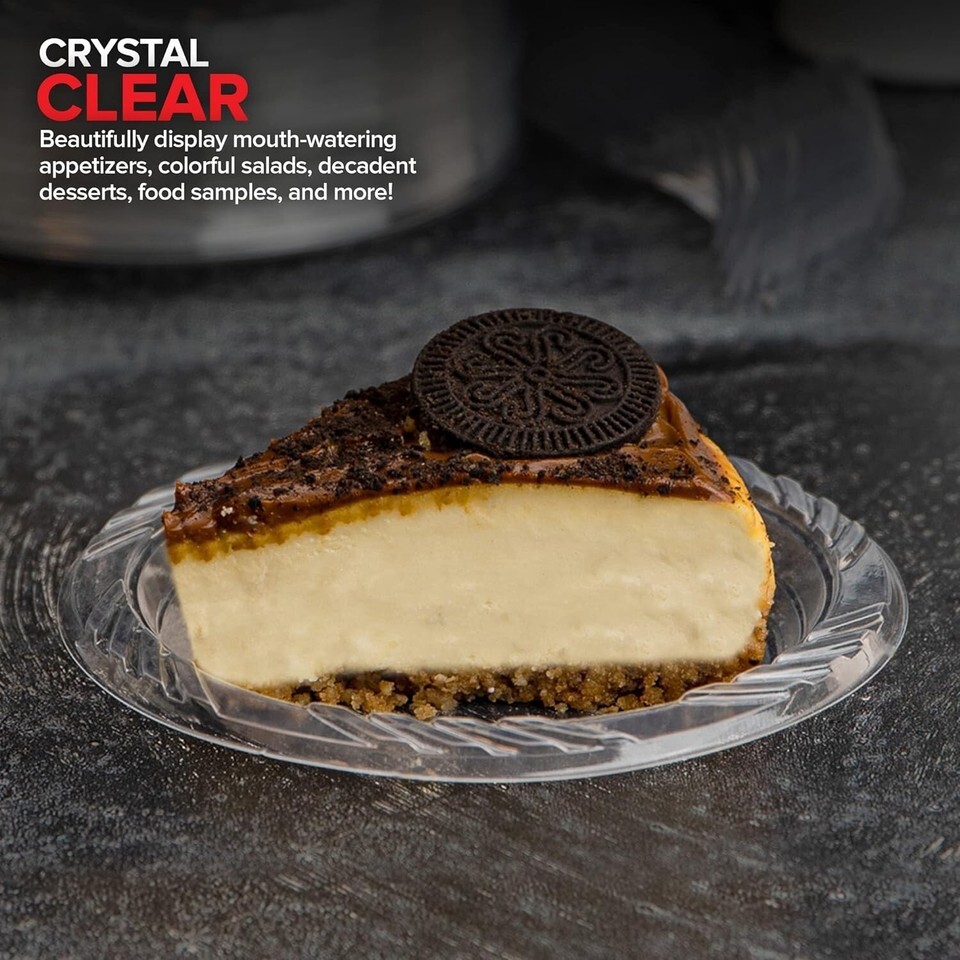 6-Inch Clear Plastic Dessert Plates: Beautifully display mouth-watering appetizers, colorful salads, decadent desserts, food samples, and more with our crystal clear 6-inch plastic plates. Made of premium quality plastic, our dessert plates are BPA-free, food grade and recyclable. Perfect for everyday use, barbecues, picnics, camping, birthday parties, weddings, and more!