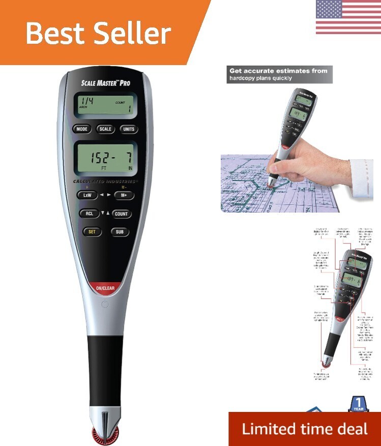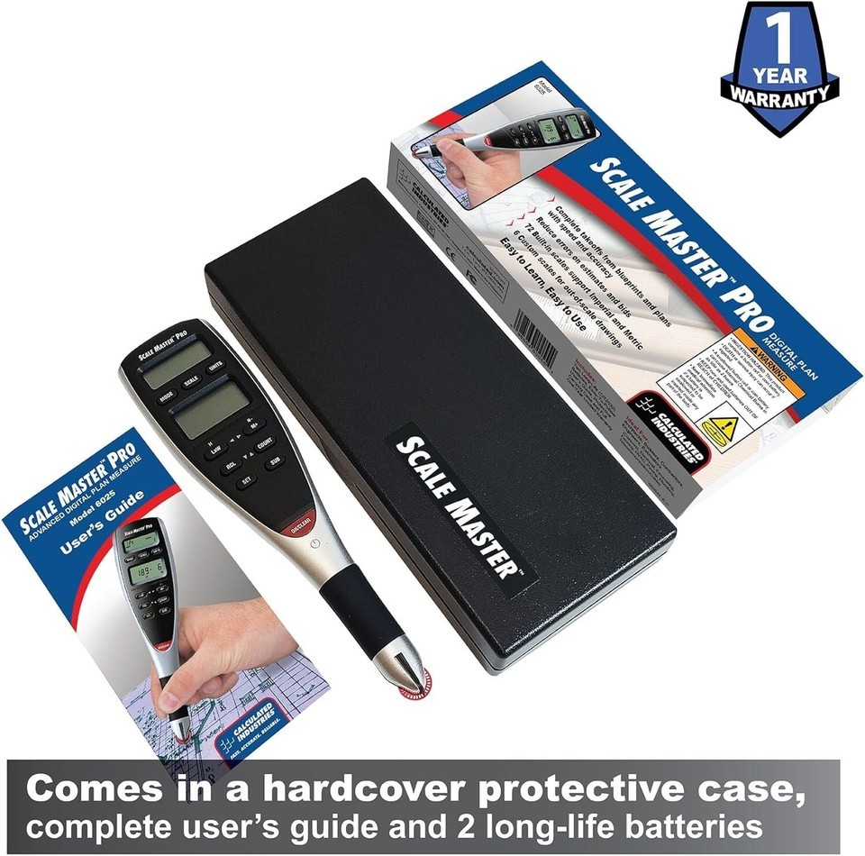 From the Manufacturer The newly designed Scale Master Pro gives you simplicity, versatility and accuracy with a new ergonomic design with comfort grip, improved weight balance, dedicated function keys and a new dual LCD display for left- or right-hand use, while maintaining the same award-winning ease-of-use, quality and reliability you expect from a Scale Master. No other plan measure gives you more for less! 72 built-in scales for more versatility. Six user-set custom scales easily calibrate to out-of-scale plans and plan books. Two built-in memories for easy area/volume and storing values. Dimensional units and dedicated functional keys ease use. Comes with a 1- . See more