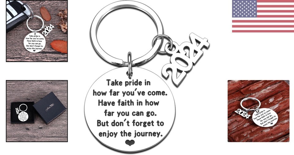 Celebrate the achievements of the Class of 2024 with our Inspirational Graduation Keychain Gift. Made from high-quality stainless steel, this keepsake is a perfect reminder of the journey ahead and the courage needed to move forward. With deep engraving and a secure connecting ring, this keychain is a thoughtful gift for any graduate. Whether it's for your son, daughter, siblings, or friends, this keychain is a meaningful way to show your support and love.