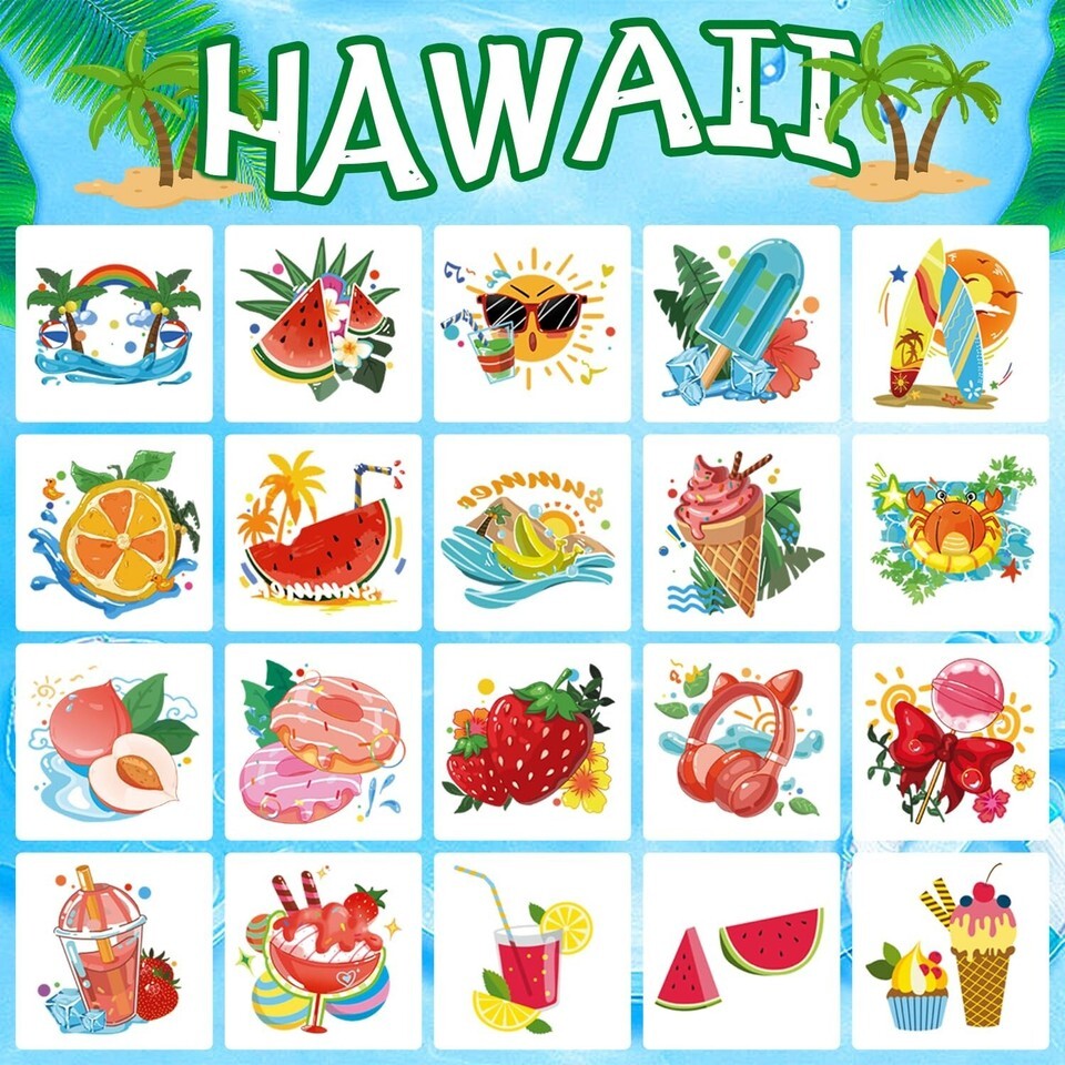 408-PCS Kids Tattoo Summer Party Tattoo Hawaiian Luau Themed Tattoos Tropical Beach Tattoos Waterproof Temporary Tattoos Stickers Party Decoration Supplies