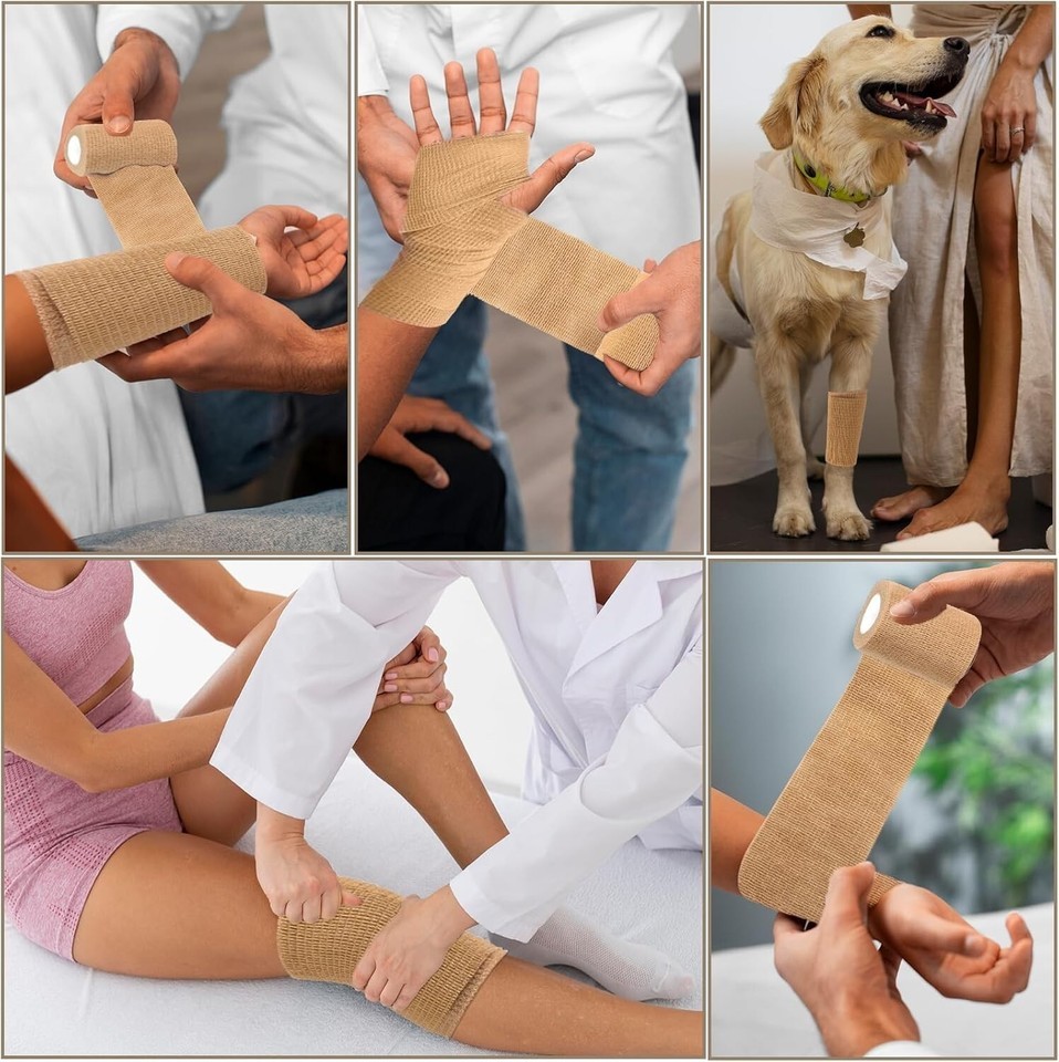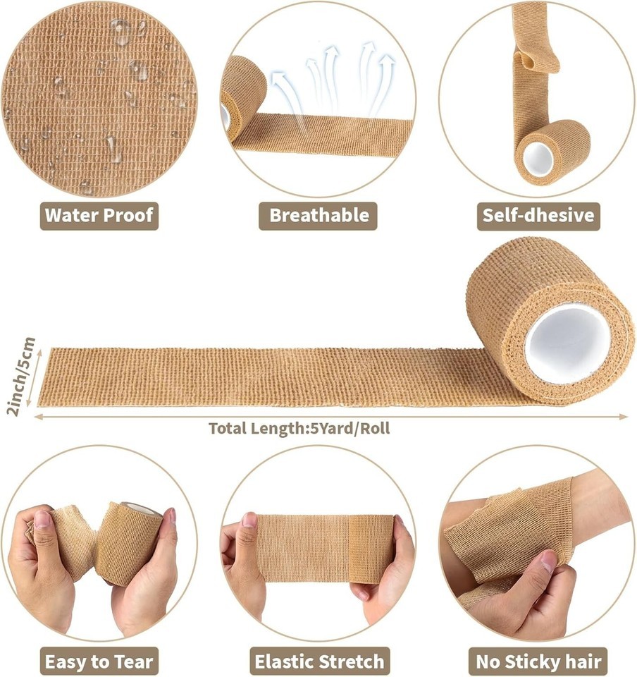 Self Sticking Bandage Wrap: This breathable wrap provides exceptional support for sprains, swelling, and strains. It's also nice vet tape for dogs and cats; ideal horse wrap bandages for hooves and legs. stretch bandage wrap nice for costume designs, cosplay outfits, and various crafts that demand flexible material