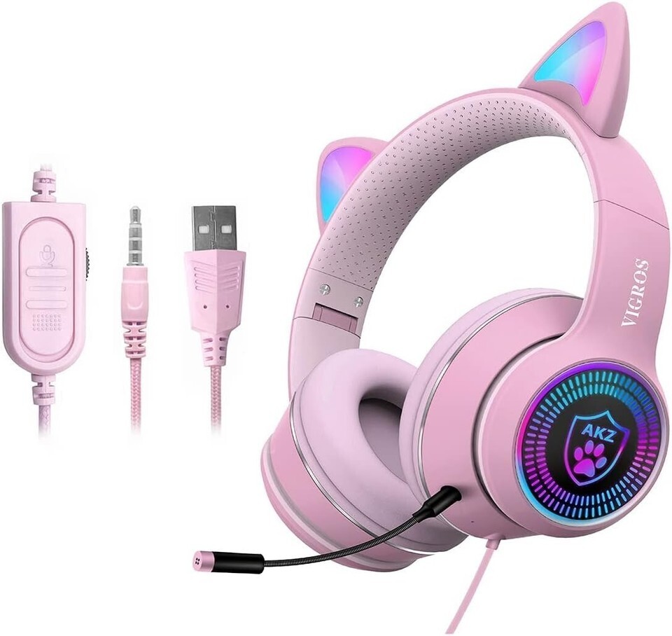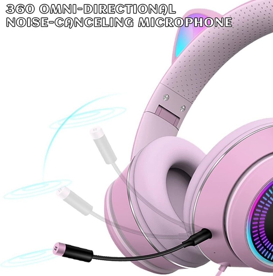 Wired AUX 3.5mm LED Light, Noise Canceling Game Headphones Stereo Foldable Ov...