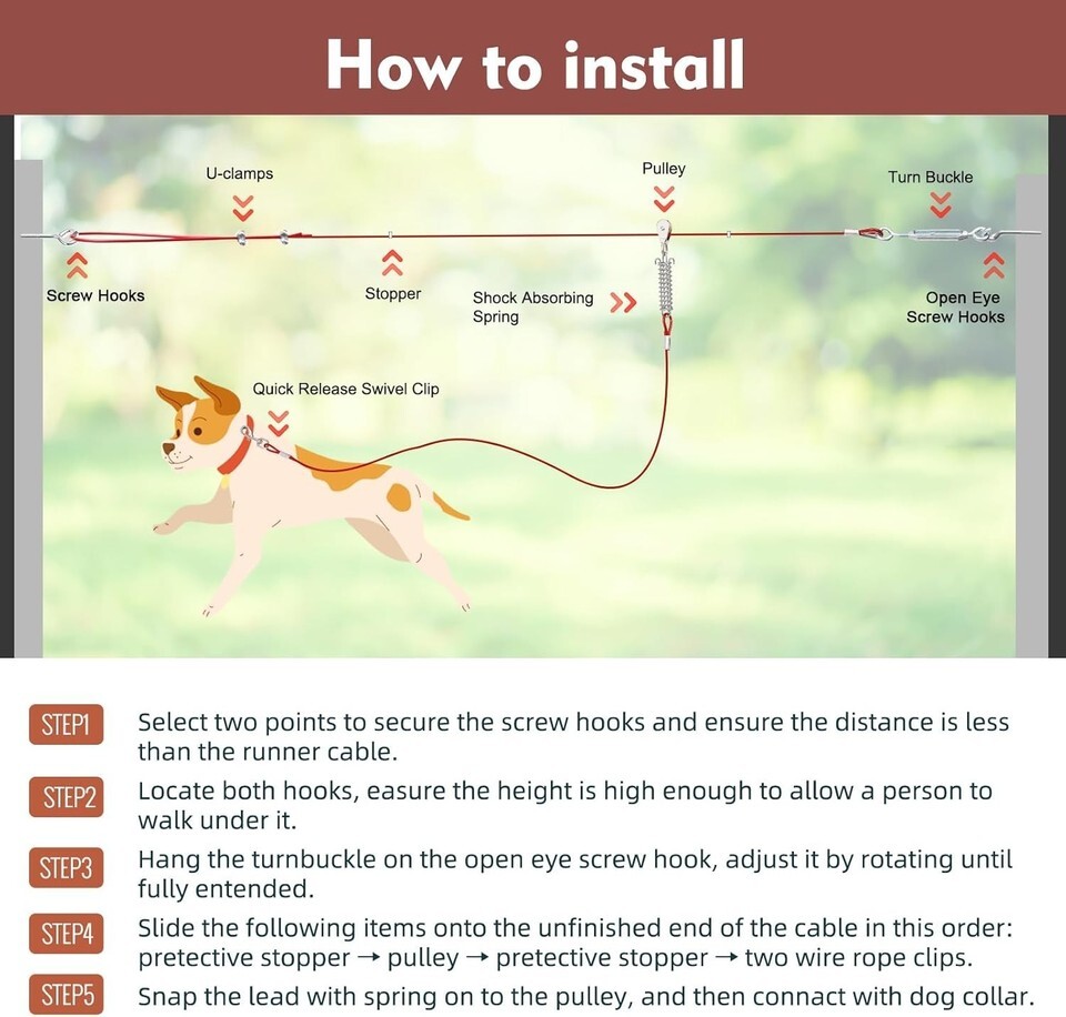 EASY TO SET UP: Our dog runner arrives with everything you need. Follow our clear, step-by-step instructions, and you can have it securely installed and ready for action in under 15 minutes. Spend less time setting up, and more time watching your happy pup explore