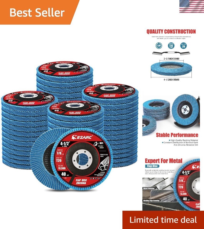 Flap Discs 40 Grit, 4 1/2 x 7/8-Inch Flap Sanding Disc, Type 29 Zirconia Grinding Wheel for Stainless Steel, Sheet Metal 50 Pack