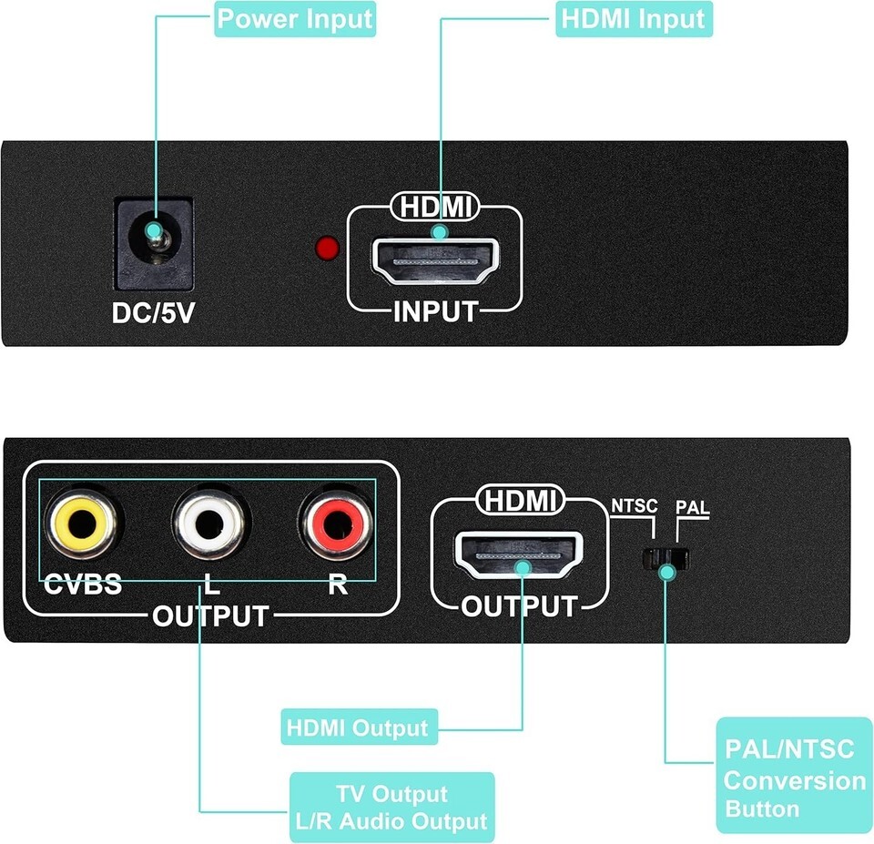 ?PLUG PLAY - Built-in IC chip, the HDMI to HDMI + RCA/AV converter box,hdmi to rca cable adapter,hdmi to rca audio,hdmi to rca adapter for tv. Converts digital signals to composite analog signals,No need Install driver. Support PAL and NTSC two standard TV formats output. Portable and flexible.