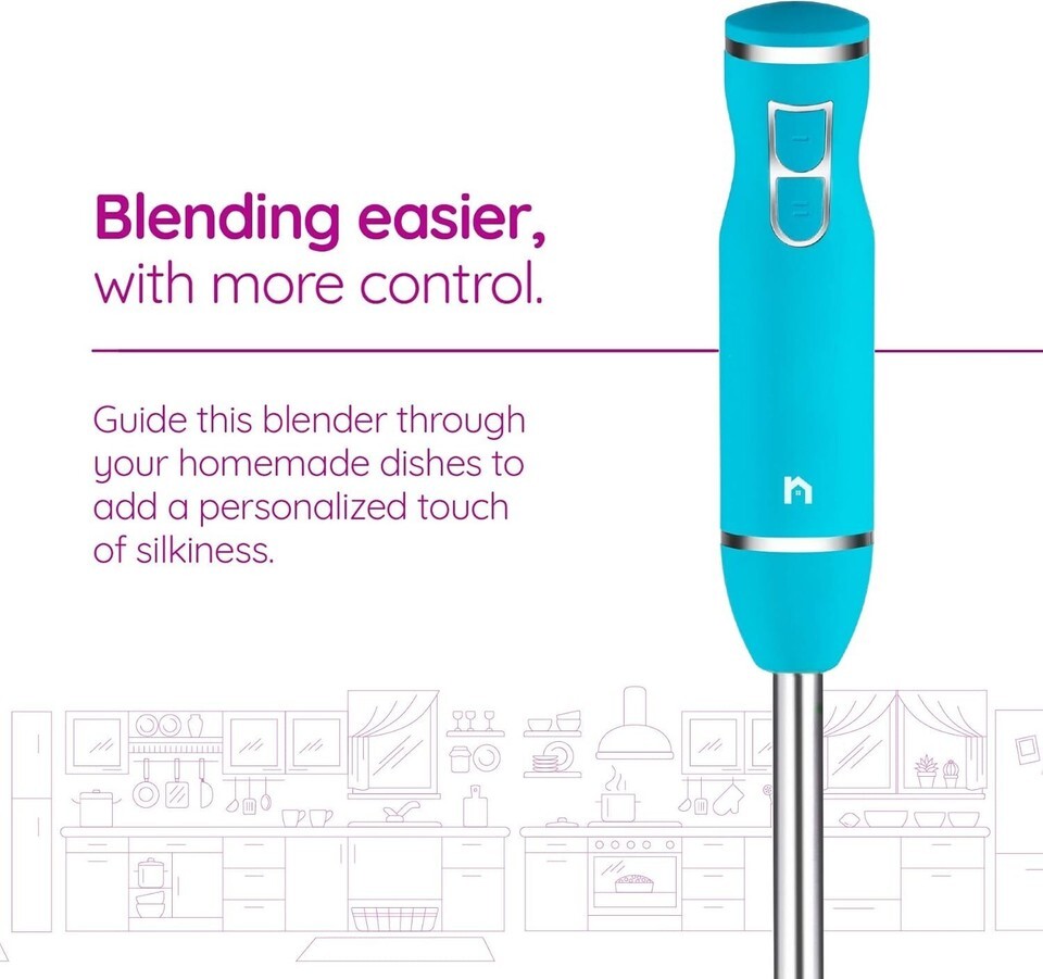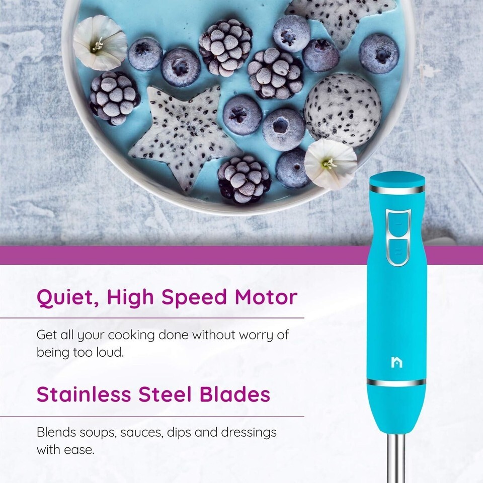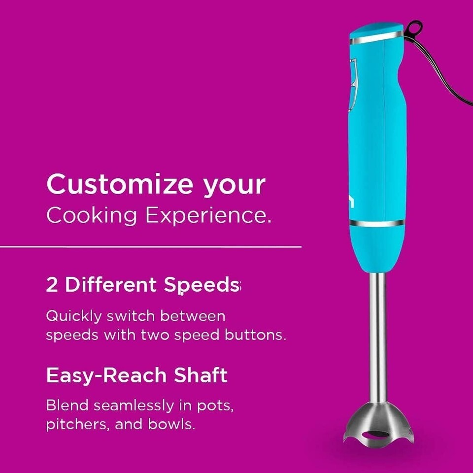 Immersion Hand Blender 2 Speed Stick Mixer with Stainless Steel Shaft Blade, 300 Watts Easily Food, Mixes Sauces, Purees Soups, Smoothies, and Dips, Turquoise