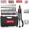 17" , Hand Rivet Tool Kit with 11 Metric SAE Mandrels M3 M4 M5 M6 M8 M10 M12, 10-24, 1/4-20, 5/16-18, 3/8-16, 110pcs Rivnuts, Sturdy Case Packed, Auto Release Nut Design,