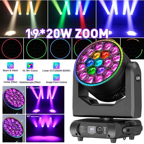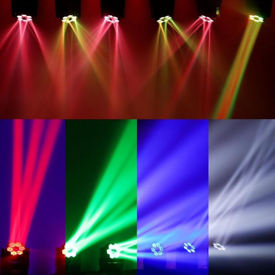 ??RGBW Bee Eye Effect?This DJ moving head light has 6 pcs 15W lamp beads (4-in-1 RGBW color mixing), Infinite rotating RGBW mixed color bee eye effect display as many stage as you has a cooling system to avoid damage to the LED stage light due to overheating.