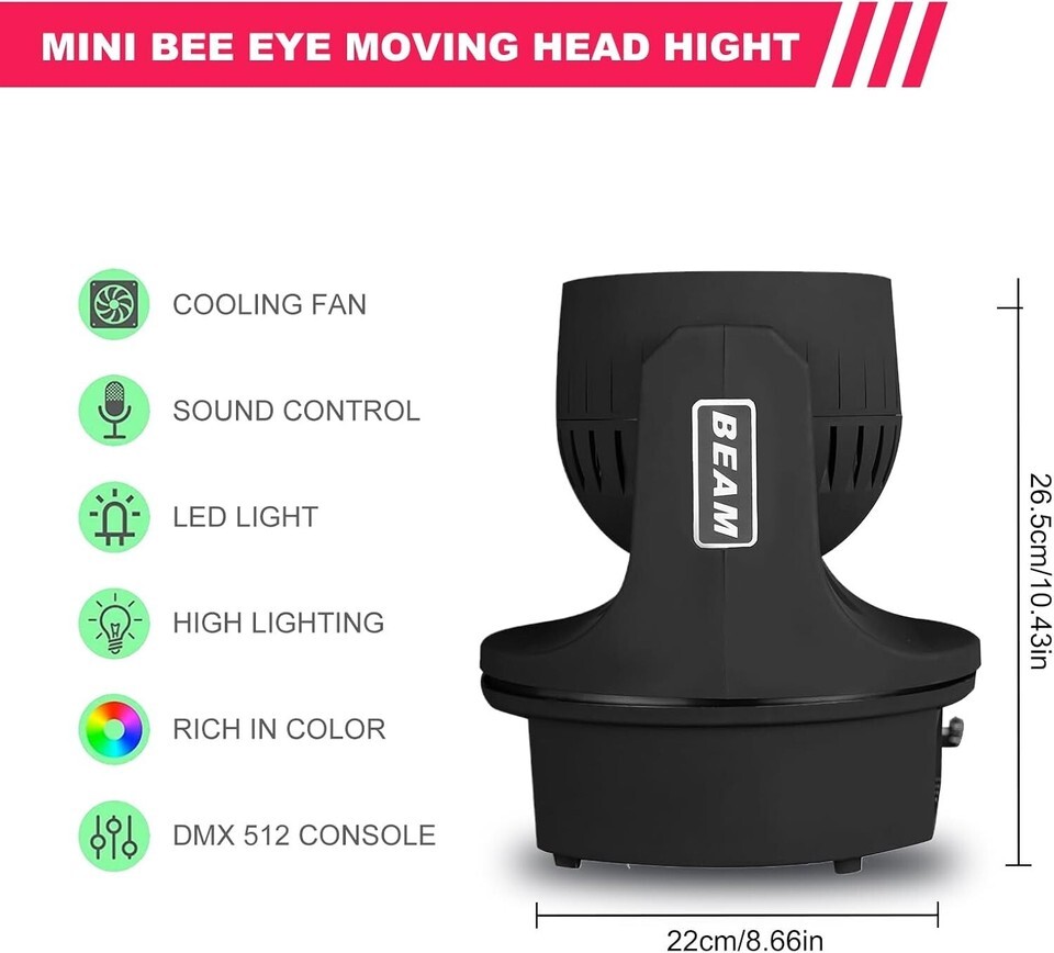??APPLICATION?The mini bee eye moving head lights are great for Wedding, DJ, Clubs, KTV, Pub, Concert, Bar, Banquet, Birthday, Ceremonies, Family parties, Christmas, Halloween decorations, etc. This DJ lighting could create the best atmosphere you want.