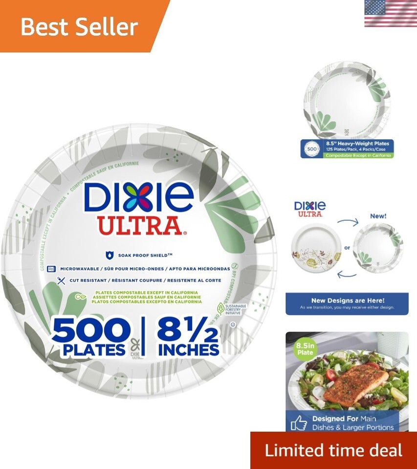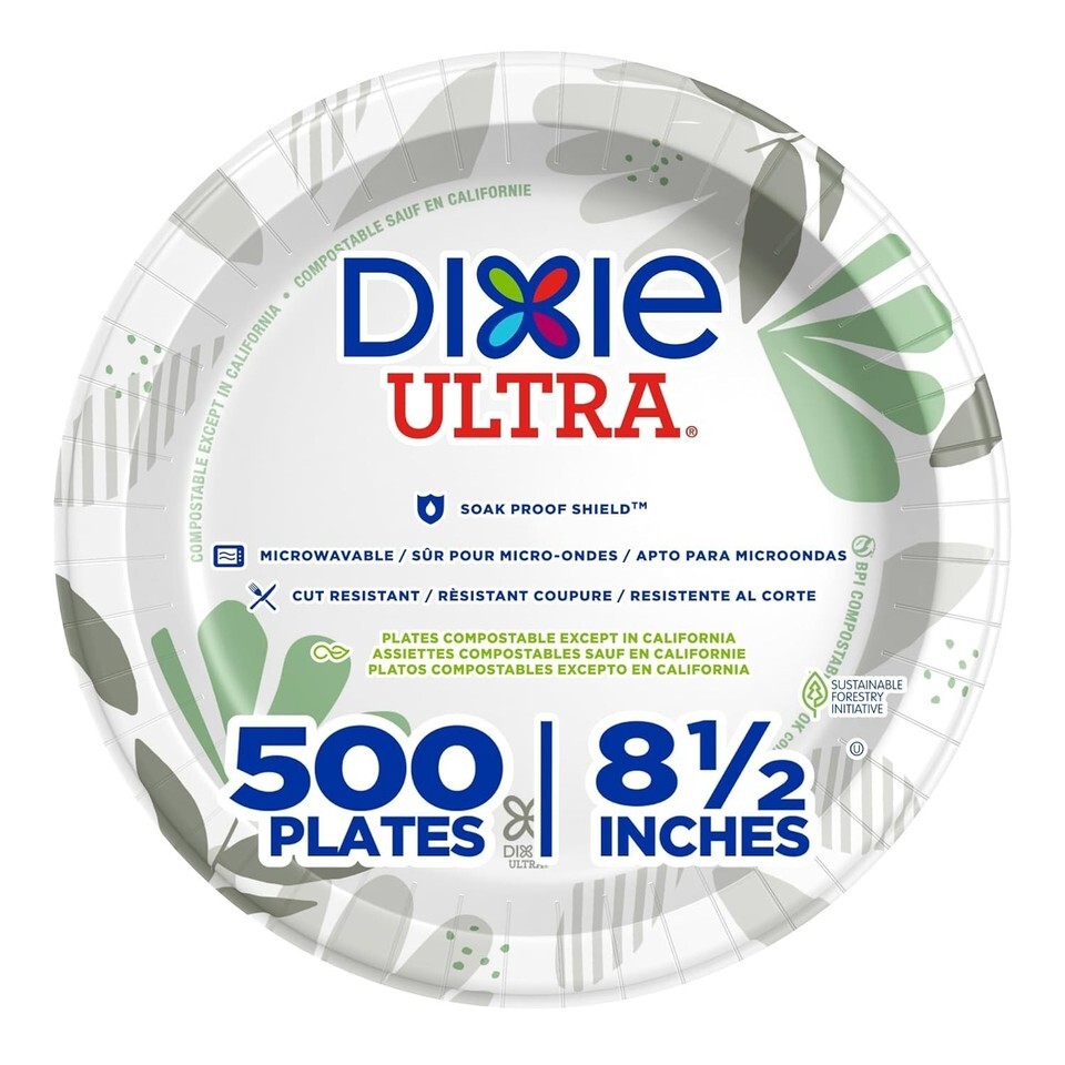 Dixie Ultra 8.5 Inch Heavy-Weight Paper Plates - 500 Count in Botanical Design