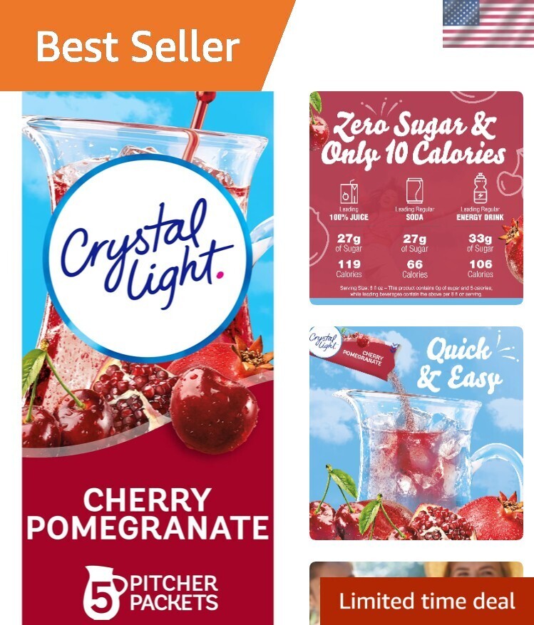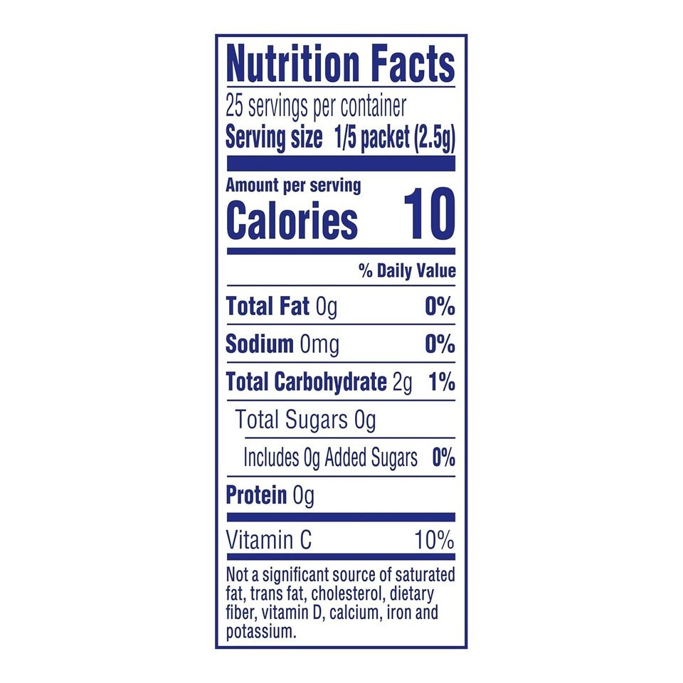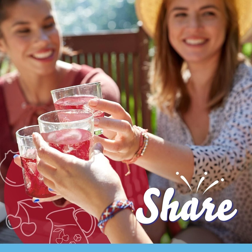 Naturally Flavored Cherry Pomegranate Powdered Drink Mix is a refreshing beverage you can enjoy at any time of day. With zero grams of sugar and 10 calories per serving, is a sweet alternative to juice and soda and has 90 percent fewer calories than leading beverages (this product 10 calories, leading beverages 70 calories), so you don't have to choose between taste and calories. It's also made with natural flavors for a refreshing fruity taste. Each pitcher packet of powdered fruit drink mix in this 5 count canister is perfectly portioned to make 2 quarts or 1 pitcher of sugar free fruit drink, so there's plenty to share with family and friends. Simply mix one fruit drink packet with 8 cups or 2 quarts of water, stir, and enjoy! All the flavor and only 10 calories... just the way you like it.