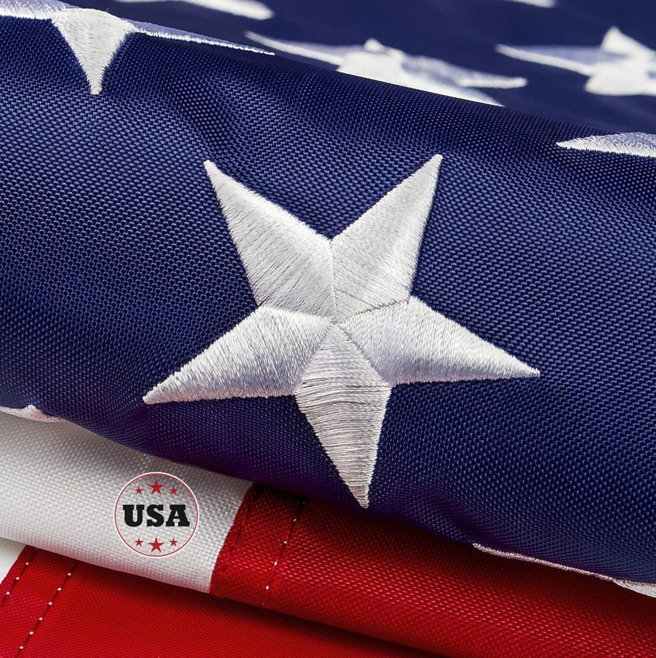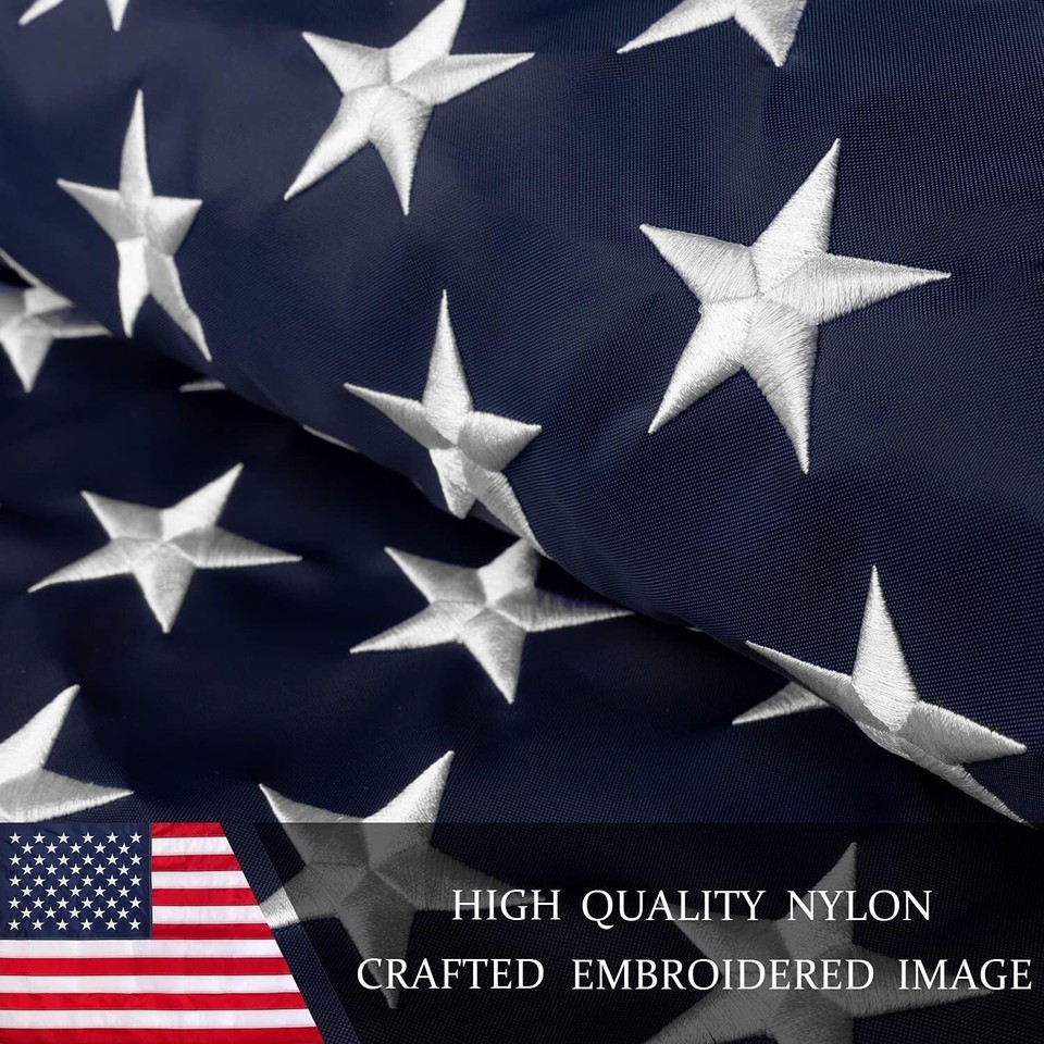 This 3x5 ft American Flag For Outside, Flags Strongest, Longest Lasting, Heavy Duty Nylon, Embroidered Stars, Sewn Stripes, Brass Grommets Perfect for Outdoors! Premium Flag