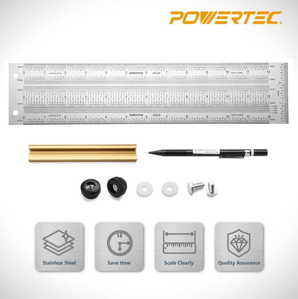 Introducing the 6-Inch Precision Marking T Ruler by precision marking tools help locate your sharp pencil or scribe with high precision. Our T-Rule is perfect for woodworking and cabinet making, because it draws lines exactly where you want them to be. The stainless steel ruler has a clear, easy-to-read scale with permanent deep markings and graduations to ensure maximum readability for more efficient line drawing. The steel T-Rule is made of sturdy, highly durable and heavy duty stainless steel. A good measuring tool and easy to use, the stainless steel T-Rule possesses an impressive combination square that has deep etching scale for superior legibility and features marking holes and slots at every 1/16, 1/32 and 1/64? scale position to meet your needs. Versatile Commonly used by woodworkers, carpenters, designers, architects and engineers. Scribes lines horizontally, vertically, long, short, parallel and with right-angled to meet your needs. Package Contents: (1) 6? T-Ruler (1) T-Bar Included Hardware: (2) 1/4"-20 x 1/2" hex head screws (2) 1/4" plastic washers (2) 1/4"-20 round knobsStyle: 6 inches (approximately cm) T-Rule Material: Stainless SteelT-Bar (T-track) Extruded Aluminum, Color: Anodized Gold is a leading manufacturer of high quality woodworking tools and accessories, machines, and an assortment of OEM parts. We are committed to exceeding expectations, while bringing the latest innovations, technology, and product development to the industry.Introducing the 12-Inch Precision Marking T Ruler with Pencil Set by precision marking tools help locate your sharp pencil or scribe with high precision. Our T-Rule is perfect for woodworking and cabinet making, because it draws lines exactly where you want them to be. The stainless steel ruler has a clear, easy-to-read scale with permanent deep markings and graduations to ensure maximum readability for more efficient line drawing. Set Includes mm mechanical pencil to produce crisp fine lines for drawing and drafting. The steel T-Rule is made of sturdy, highly durable and heavy duty stainless steel. A good measuring tool and easy to use, the stainless steel T-Rule possesses an impressive combination square that has deep etching scale for superior legibility and features marking holes and slots at every 1/16, 1/32 and 1/64? scale position to meet your needs. Versatile Commonly used by woodworkers, carpenters, designers, architects and engineers. Scribes lines horizontally, vertically, long, short, parallel and with right-angled to meet your needs. Package Contents: (1) 12? T-Ruler (1) T-Bar (1) mm mechanical pencil Included Hardware: (2) 1/4"-20 x 1/2" hex head screws (2) 1/4" plastic washers (2) 1/4"-20 round knobsStyle:12 inches (approximately cm) T-Rule Material: Stainless SteelT-Bar (T-track) Extruded Aluminum, Color: Anodized Gold is a leading manufacturer of high quality woodworking tools and accessories, machines, and an assortment of OEM parts. We are committed to exceeding expectations, while bringing the latest innovations, technology, and product development to the industry.