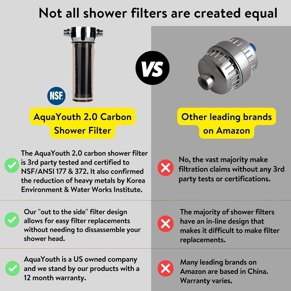 Carbon Shower Head Filter System | Removes Chlorine, Heavy Metals, And More | Great For Dry Skin/ Hair, And More | NSF Certified