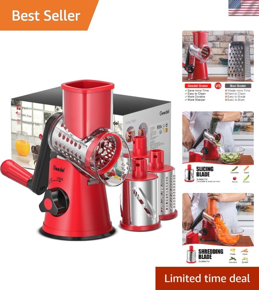 Rotary Cheese Grater, Kitchen Mandoline Vegetable Slicer with 3 Interchangeab...