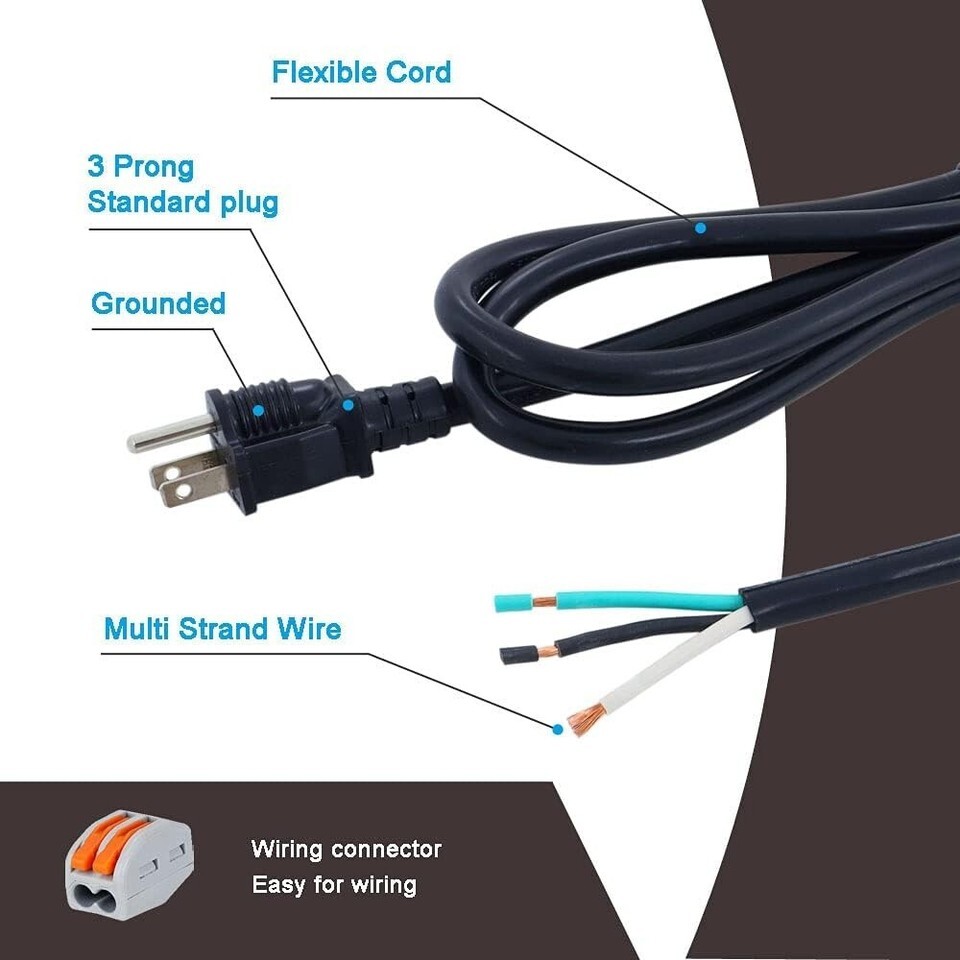 12 AWG Power Cord 12FT Open End Heavy Duty 12 Gauge 3 Prong 12 Foot 3 Wire SJ...