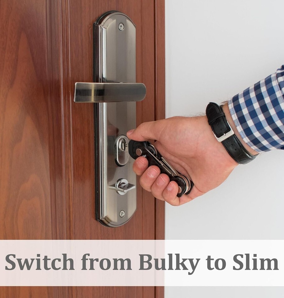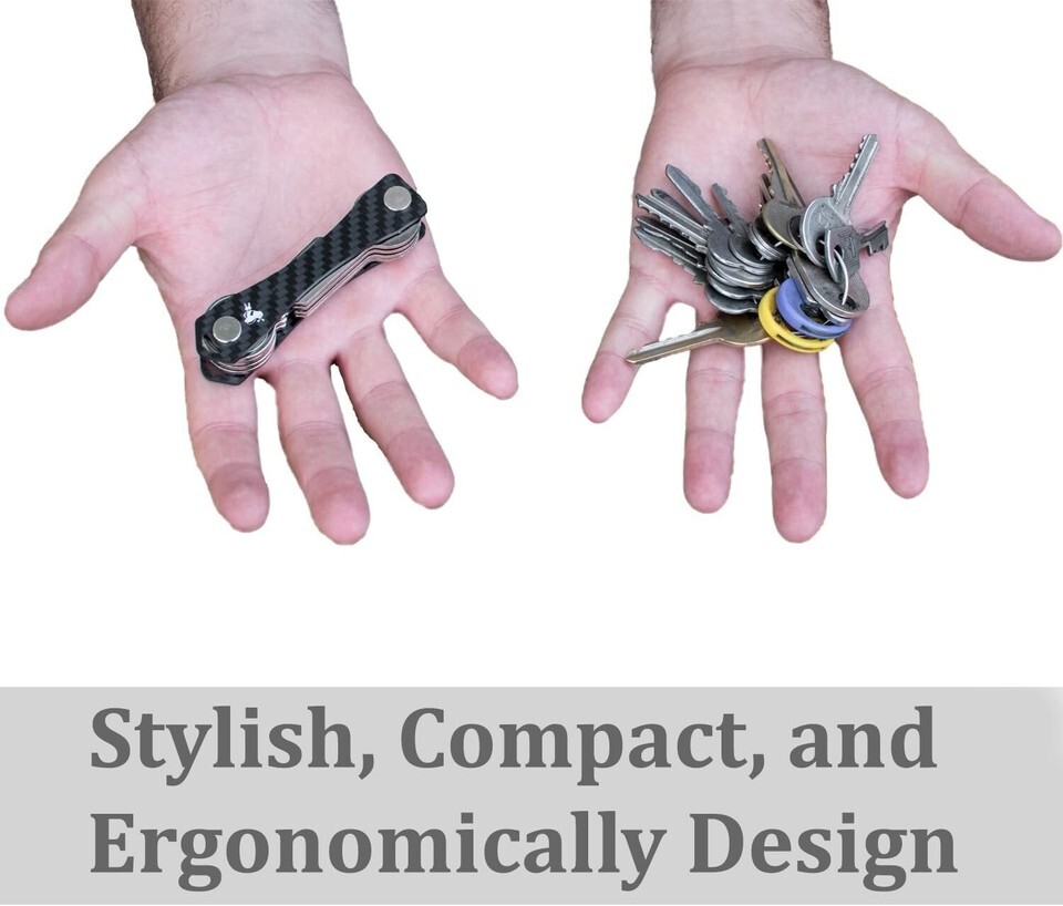 Quality Focus: Forget about cheaply made products! The compact key organizer is built from premium carbon fiber, stronger than ever, its assembly makes it incredibly durable, so it will not break if it falls out of a pocket and looking fantastic even after s of wear. Our product is built to last. The simple key organizer has a great robust mechanism for tightening the frames and will keep their grip no matter how many keys you add