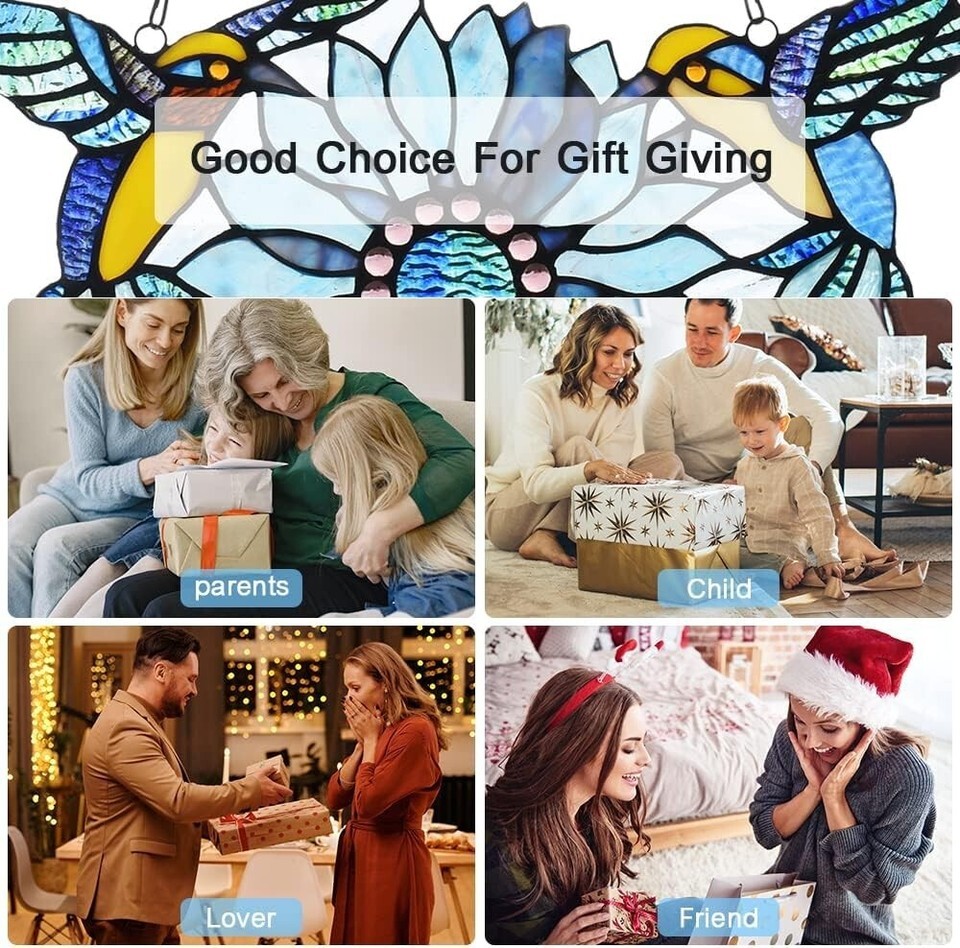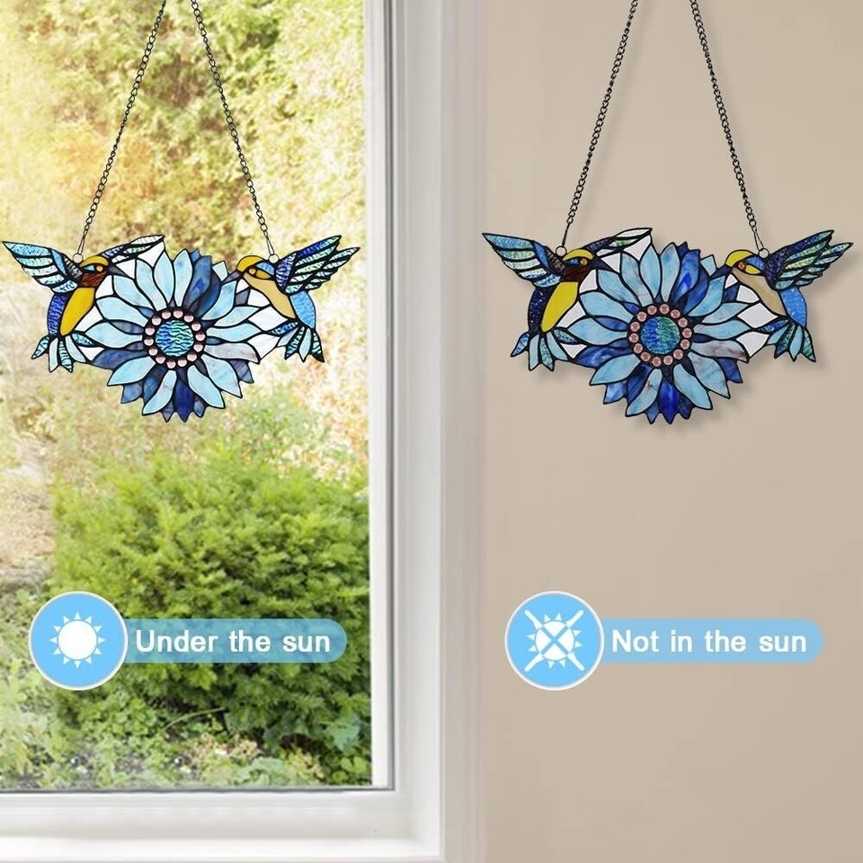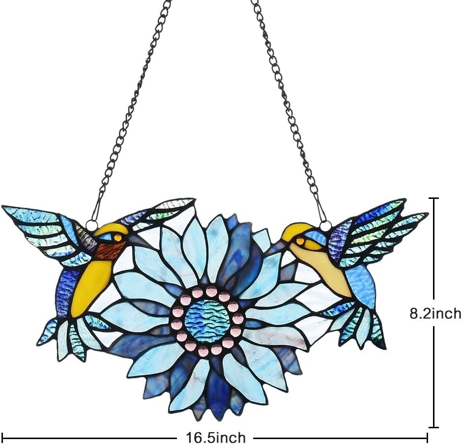 Mothers Day Sunflower Hummingbirds Gifts Stained Glass Window Hangings Suncatchers Tiffany Art Style Handicrafts Flower Birds Lovers Gifts for Home Window Decor