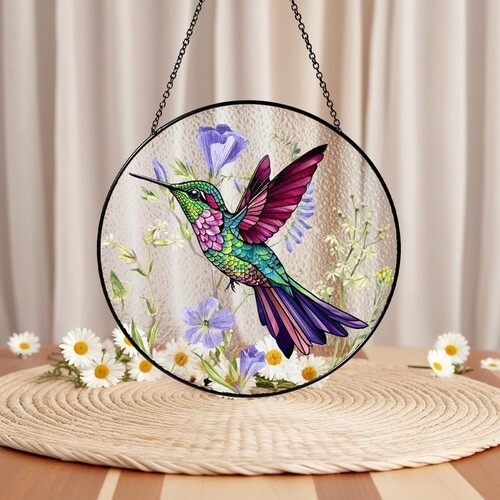 Mothers Day Sunflower Hummingbirds Gifts Stained Glass Window Hangings Suncat...