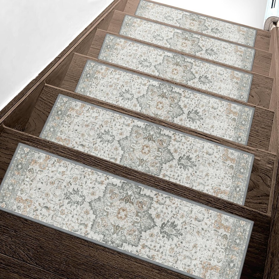 ?STYLISH QUALITY STAIR TREADS? stair treads seamlessly blend vintage aesthetics with luxury and refinement. The elaborate light taupe brown floral patterns and harmonious colors create a captivating visual effect. Made from high-quality polyester, these non-slip stair treads are soft and sturdy, reducing the noise generated when going up and down the stairs. They provide a quiet and relaxing home environment, enhancing the quality of your home decor.